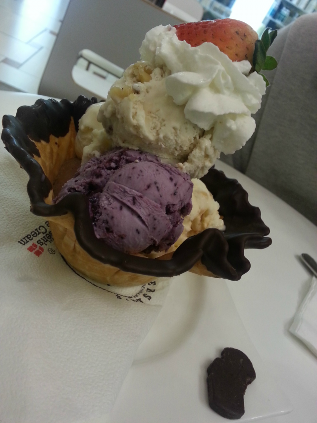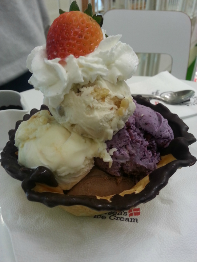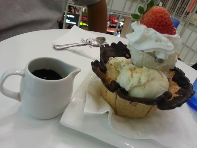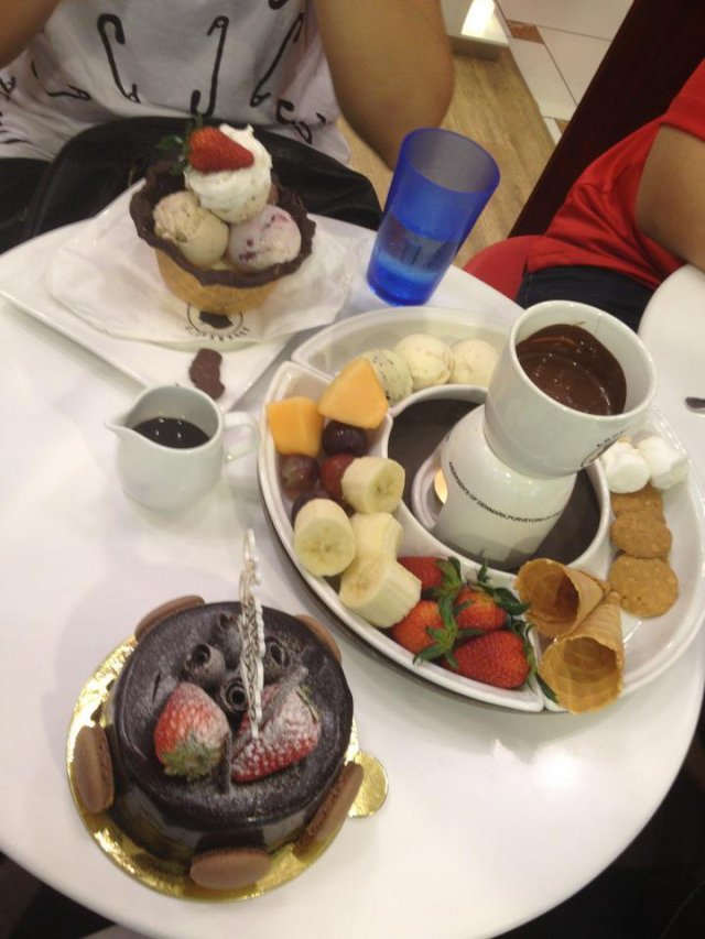 1) Coffee Oreo milkshake $5 - This came after we almost finished our desserts. It had quite an icy taste, very refreshing and cold. This milkshake is made up of 2 scoops of latte icecream and 1 scoop of cookies & cream icecream.2) Blueberry cheese cake $5.20 - This tasted not bad. The cheese taste was rather strong while the blueberry taste was lacking. The texture was sufficiently moist.3) Happie brownie $14.50 - one piece of thin brownie sliced into half (so they were 2 slices on the plate) with 1 scoop of whipped cream and 2 mini scoops of icecream. We chose banana crunch and forest berry flavours for the ice-cream which were good but there was a lack of banana flavour for the banana icecream. Scoop of icecream could be larger to make it more enjoyable. The chocolate dip served at the side was too thick and dry and wasn't warm too which I believe would have tasted better if it was something like warm chocolate fudge.…查看更多
