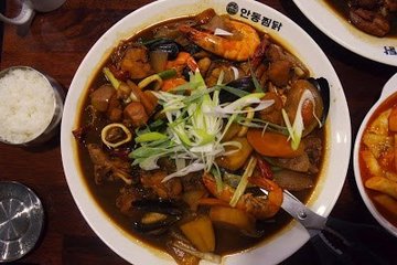 Full review: http://nkikichua.blogspot.sg/2015/11/andong-zzimdak-raffles-city-city-hall.htmlAndong Zzimdak specialises in Andong jjimdak, a dish that originated in Gyeongsangbukdo, Andong, and jjim means a Korean steamed or boiled dish + dak means chicken. There you have it, a dish made with chicken, various vegetables such as potatoes and carrots, marinated in ganjang (Korean soy sauce) based sauce and simmered to perfection.There are four types of jjimdaks and we choose the Boneless Jjimdak | $49.90 for Medium (shares 2-3pax) | $59.90 for Large (shares 3-4pax) - this is an alternative to their signature, the original ones with bones. This plate of goodness is filled with tender and boneless chicken thigh meat, carrot, potatoes and thick chewy sweet potato noodles, and marinated in spicy ganjang (Korean soy sauce) based sauce. Dokboki (rice cake) was an additional toppings at $3.90. You could also order additional noodles or steamed rice. It would really taste so much yummier if it was in hot pot style keeping it hot, especially it'll take time to finish savouring this big plate and the food turns cold after a while.Although jjimdak are generally spicy, we don’t think it’s spicy at all, spicy lovers should probably go for Maya Jjimdak (spiciest with three chilli symbols whereas the rest are just with one chilli symbol). The food were served very timely, less than 10 minutes, somewhat like a fast food concept but with limited seating capacity and close proximity of the tables. Furthermore, it can get a little noisy after a while, not ideal if you want to have chats during your meal.…查看更多