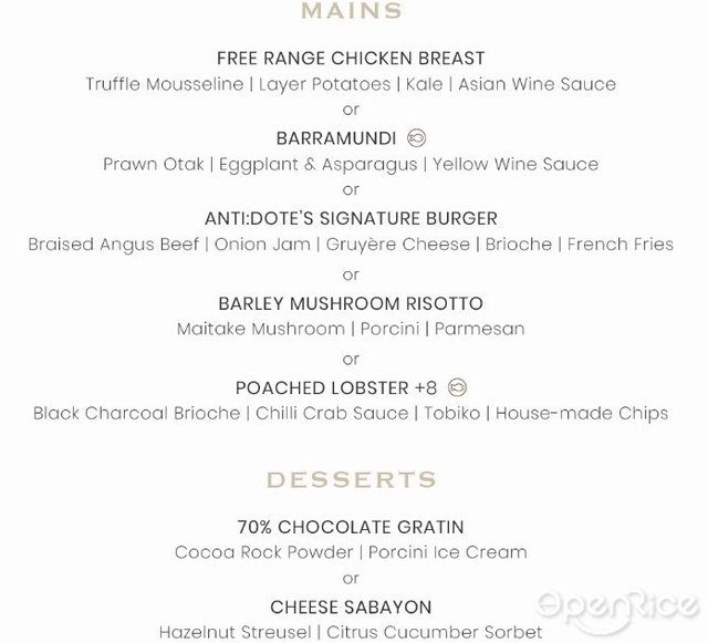 ANTI:DOTE (新加坡) 網址: https://s.openrice.com/eKbSB01ebi100 地址: 80 Bras Basah Rd, Level 1 Fairmont, City Hall, Singapore 電話: +65 6431 6156
