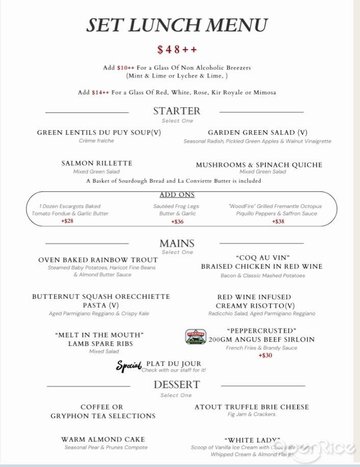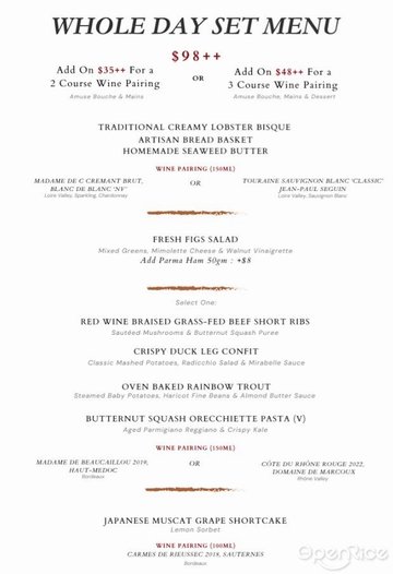 熟食冷肉盤 / 龍蝦湯 / 法式肉餡餅 / 芝士培根餡餅 / 黑安格斯肉眼牛排 / 黑布丁
