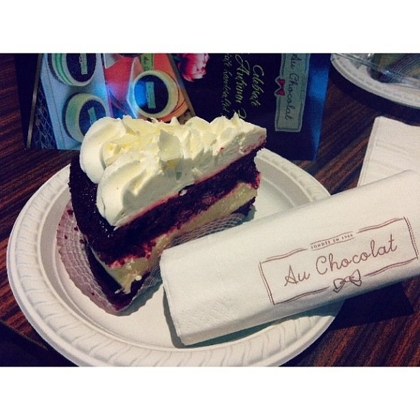 Pauline n Sam tell us how nice the food is at Au Chocolat but we have yet to have a chance to try. Finally, we are going today together.. Au Chocolat at MBS is divided into bistro dining area and a retail confiserie with a wide selection of chocolate and candy. Apart from selling candy and chocolate, the retail confiserie also has items of their icons Yufa and OO, 2 cute dogs...Each of us ordered a drink.. sam had Banana Boost $12.00,a drink a combination of white chocolate and banana.. she commented that this drink is nice and she is able to taste the taste and sweetness of the banana. Wendy had Mango Magic $12.00.. forget to ask her for the taste but I suppose should be nice coz no complains from her.. Theresa and Myself, we had the Taiwan lychee beer $12.00, its so nice, sweet and refreshing. Pauline ordered the Hot Fudge $10.00,accordingto her, this is nice when its consumed when its hot, the drink is creamy and had strong, nice chocolate taste..we ordered 2 sides to share1) Sweet Potato Fries $12.00, that is served with Mayo & BBQ sauce.. I super love the sweet potato fries here, it is sweet and crispy.. a recommended dish to order...2) Mushroom Bites $14.00 that is cooked and simmer in red wine sauce. This dish is served with tomato and slices of toast at the side. Spread some of these mushroom on the toast and it's so yummy. The mushroom is well infused with the sauce and is soft, great combination to eat with the toast.each of us ordered a main too, Pauline, Evelyn and Me, we ordered the nice, yummy Boeuf Bourguignon $26.00. This is beef check, bacon, carrots and mushrooms slow cooked in veal stock and red wine. Looks small when it is served in the pot but it is actually quite filling as there is mash potato underneath the beef and a bread at the side. I would strongly recommend this dish as the beef is well cooked, soft and had absorbed the sauce making it tender too.. the mash potato on it own is already tasty but taste even better when you eat it with the sauce. A very well done dish..Sam and Theresa ordered the California Smoked Salmon Sandwich $20.00. Both of them have no complains with this dish and both commented that this is nice and the serving is huge.Wendy ordered the Pacific Crab Cake $32.00. I had a small bite on this and this is nice too. The crab cake has nice, sweet taste of crab. Worth trying too..We are all so full from the meal but well, there is always a little more space for desserts and furthermore, there is no way we can resist the temptation of desserts from the huge selection of cakes and pastries from the confiserie. We decide to order the Kalamansi tart $9.00 and Cookies & cream brownie $5.00 to share. Personally I prefer the Kalamansi tart over the Cookies & cream brownie. The Kalamansi tart topping has strong kalamansi taste which is sourish but the taste is so refreshing. You need to eat this together the tart, the combination is heavenly, the sweetness from the tart plus the sourish taste from the topping, nice and well-balanced... The cookies & cream brownie is nice but a little too sweet to my liking and so I only had a bite and stop...We are actually here today for the Wednesday waffles promo that is 50% off on the second waffle purchased but was told by the staff that we cannot had waffles at the bistro area and that we have to walk over to the confiserie for it. We are comfortably seated down and do not want to sit at the high chair at the confiserie, we decide not to have the waffle today..Thou we are disappointed that we don get to eat the waffle at the bistro area but still I think Au Chocolat is worth visiting, the staffs here are friendly and quite prompt... great place for friends meet up... I will definitely return again...…Read More