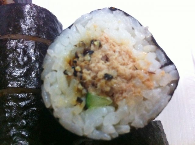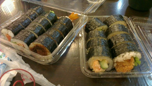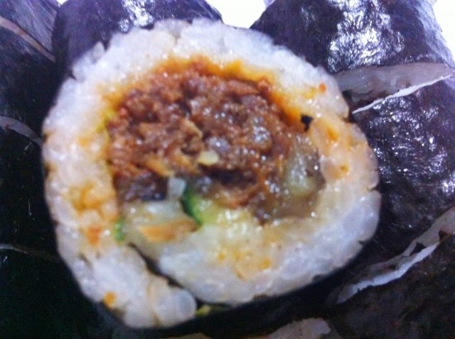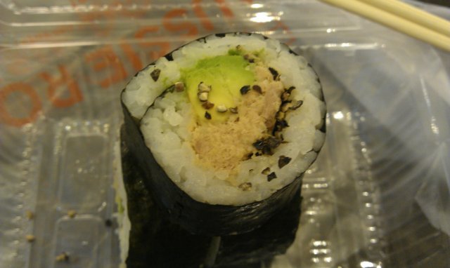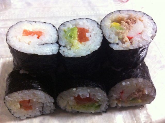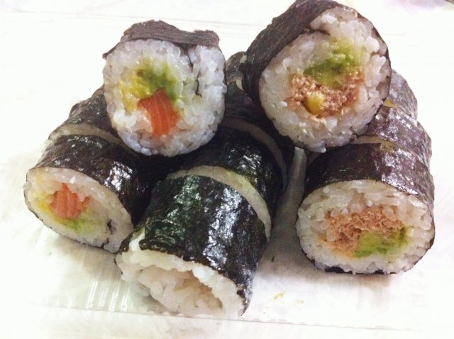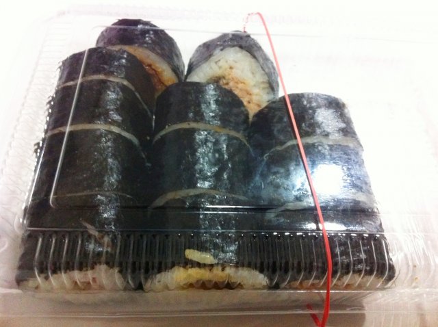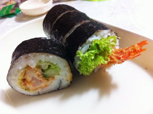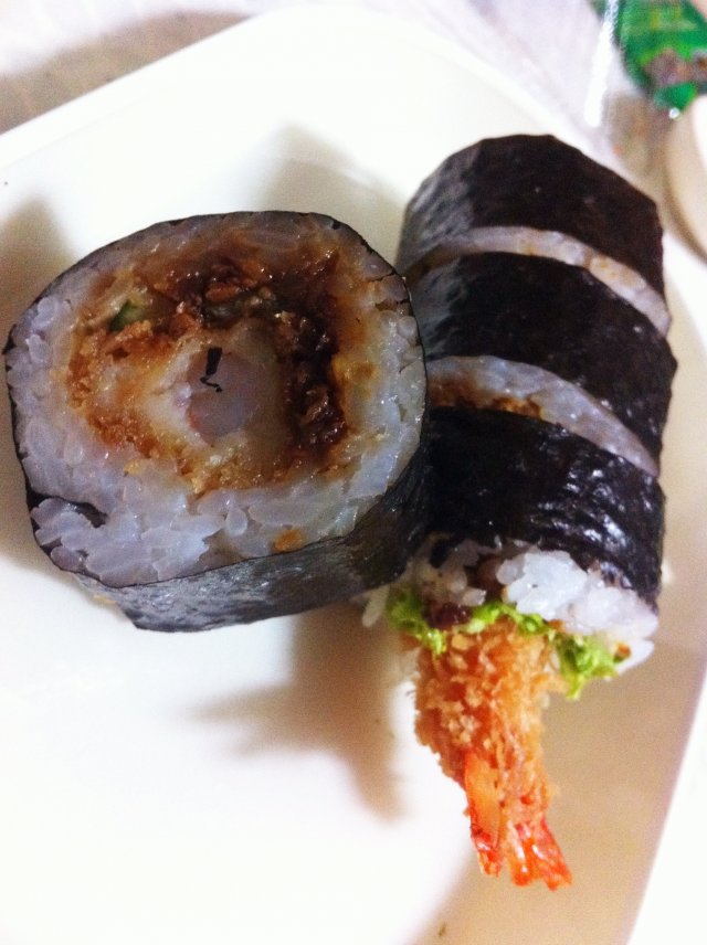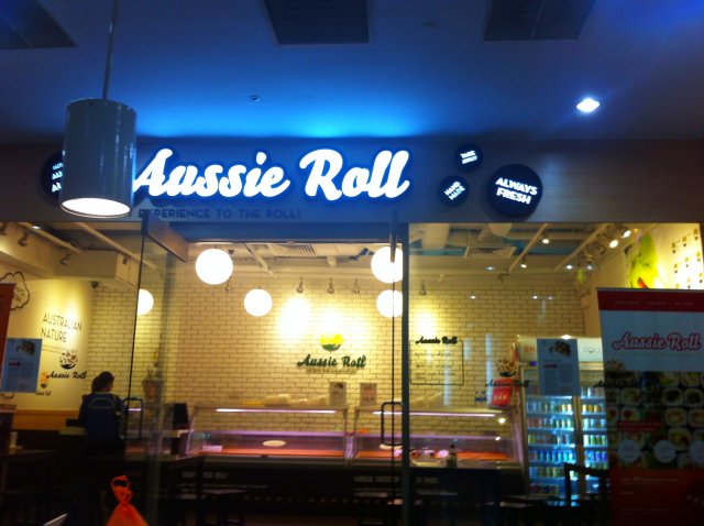 Restaurant front view of Aussie RollIt was a Friday (26 April 2013) night, we decided to go over to Aussie Roll Cafe which sells ready made sushi rolls. We had been passing by this place but never really went in to try out their dishes so this time round, we decided to try it out.A look from the front shows that they were being featured in one of the food critic magazine/newspaper as there are some print out and photocopied cutting being shown on the glass wall. There are not much tables and chairs inside the restaurant but these was not an issue as there are many tables (public usage) outside of the restaurant as these were some sort of min food court over at this place. A lot of people bought their sushi rice as take away and they will help customer to cut those long sushi into bite size (You can choose to eat it as a whole without cutting too).Nice and attractive display of their sushi rice rollsI think the restaurant boss was very smart not to waste as much of their food as possible as they came out with a happy hour sales (Similar to Japanese restaurant) where you get a discount after a certain hours and in this case, their happy hours is get a free roll when you purchase any 2 of their sushi rolls starting from 6:00pm between Monday to Friday Only.Important point to note is they accept Cash Only payment so remember to bring cash before purchasingOne of their popular variety in their menu and we are actually getting this last roll from their selection (Most of the others are sold out or left with a few). The salmon mixed with the avocado was a nice compilation though I would say most of their rice are quite hard and not as good as the real Japanese sushi rice. This version is quite sticky and dryer.The chicken version of the compilation was not as good as Salmon Avocado as chicken meat were more tough and the chicken since they were using breast meat of the chicken, they do not have much taste too.Same as the chicken avocado but the meat is actually more tasteful than the earlier as it is being marinated with their soy sauce. This roll is not spicy as it was being stated though there was still a bit of spicy aftertaste which was actually nothing at all.…查看更多