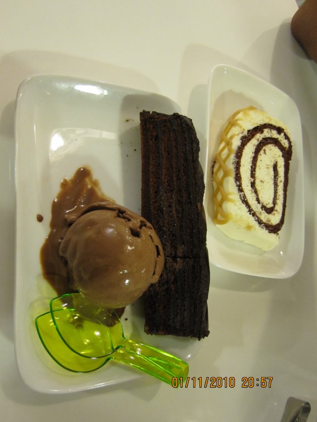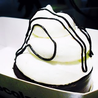 My friend and I shared a Cold Poached Chocolate with Kahlua cream ($6.50 each), and while we both enjoyed it, we felt that the chocolate base was a tad too decadent for our palates. A liquid chocolate mix is poured into molds on a cold marble slab and left to solidify to form a circular base, with a texture akin to a rich chocolate mousse. The cold slab of chocolate is then topped with a generous drift of whipped cream lightly spiked with your choice of liqueur- flavors include Bailey's Irish Cream, butterscotch and Kahlua.I guess this dessert is best suited for die-hard chocoholics!…查看更多