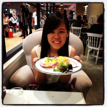 I was around Joo Chiat area with my mom and this shop is just right in-front of the bus-stop we were at! The muffins on the display counter were calling out to us and they were priced at $9 for 6 pieces! We decided to takeaway for our tea-break later ^^ The banana bread looks good too and we bought back a loaf. True enough, it tasted as good as it looks as it had the right amount of moistness and banana flavour! However, the muffins were disappointing as they were quite dry. I had the banana chocolate and strawberry chocolate flavour and both didn't had much filling.…查看更多