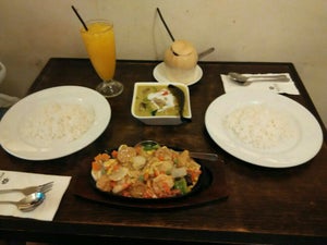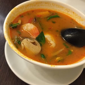 BBQ chicken $10Portion was very small for this price but it was well-marinated and chicken was tender. lemongrass seabass $29the flesh was really soft and tender and the gravy was spicy and really sour. It went well with white rice too.prawn tanghoon with pepper $10.80. There were 3 prawns in it but their texture was quite soft. The tanghoon was drenched in black pepper gravy and was smooth. The taste of pepper was not overwhelming too.Overall, it was a decent thai meal.…查看更多