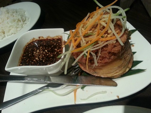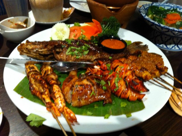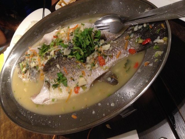 BBQ chicken $10Portion was very small for this price but it was well-marinated and chicken was tender. lemongrass seabass $29the flesh was really soft and tender and the gravy was spicy and really sour. It went well with white rice too.prawn tanghoon with pepper $10.80. There were 3 prawns in it but their texture was quite soft. The tanghoon was drenched in black pepper gravy and was smooth. The taste of pepper was not overwhelming too.Overall, it was a decent thai meal.…查看更多
