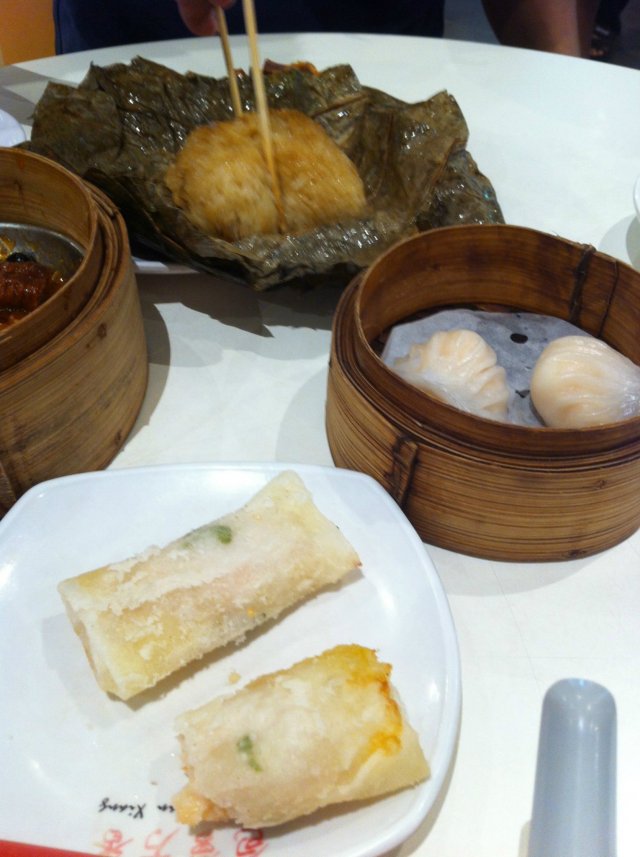 im sum at the bottom left was really really bad. It's mango with prawn wrap. I think it was supposed to be crispy, or at least somewhat crispy. But it turned out to be cold and disgusting. I didn't like it at all. Chose it as it was the last 2 pieces, thought it was going to be nice but, EEW. NOPE. The har gow was not too bad as it was left in the steaming fridge-like thing. Taste quite nice. Glutinous rice was quite filling, the rice wrapped up a number of ingredients - mushrooms, meat, nutI think it will be better to go in the early morning if you want to eat nicer dim sums. Plus, it doesn't help that the lady from china did not know anything about the food she was selling. She just said "wo zhi shi mai dong xi de, bu zhi dao bu zhi dao" when i asked her about some things in the dim sum. BAD SERVICE!
