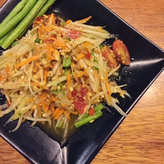 A new concept from ThaiExpress, Basil by thaiexpress targets the young, wild and trendy food goers. Its debut outlet at kallang wave mall aims to attract the young and wild generation seeking good and afforable food with a hip and rustic ambience.so am told that the dishes at this new outlet are mostly whipped up from scratch. It is evident as I could taste that most of the ingredients such as the prawns and coconut used were really fresh. the dishesPapaya Salad Light refreshing and all so spicy. I was just back from thailand a couple weeks ago and i realise how a good papaya salad comes about is the need for fresh ingredients. Thai Fish cakeYou can't go wrong with fish cakes. The one my basil was a tad soft but still had that otah thai fish cake taste. Marries well with the sweet and spicy sauce provided too!Thai style salted egg calamariFried calamari on a wooden dish topped with salted egg yolk sauce. I would say very different from the usual thai salted egg yolk calamaris dished out in Singapore, this is more dry and less sweet. Nonetheless, that taste buds wowing salted egg yolk still delighted the table. Songkran chicken wings Wings made to celebrate the Songkran festival. Although it was quite salty, the wings were fragrant and juicy. The seasoning bits over the chicken gave the wings that crunchy sweet texture. Stir-fried Phuket Bee Hoon Phuket style bee hoon which was my other favourite dish of the night. That lime gave the whole dish a zesty flavour, coupled with the bee hoon which (my guess) was fried with coconut sauce. Tiger prawns adding a seafood taste to the entire dish. A unique flavour all round. time for dessertsMango sticky riceCoconut sauce and mangoes were fresh. Apart from that, nothing much to rave about. overall review: ful review and pictures @ http://shauneeie.blogspot.sg/2015/04/basil-by-thai-express-kallang-wave-mall.html…查看更多