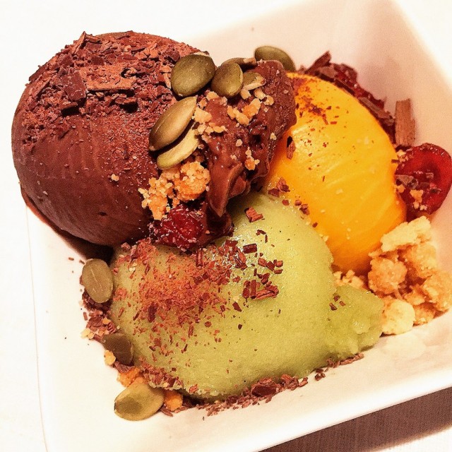 Chocolate Gelato, Mango, Lemon & Basil Sorbet