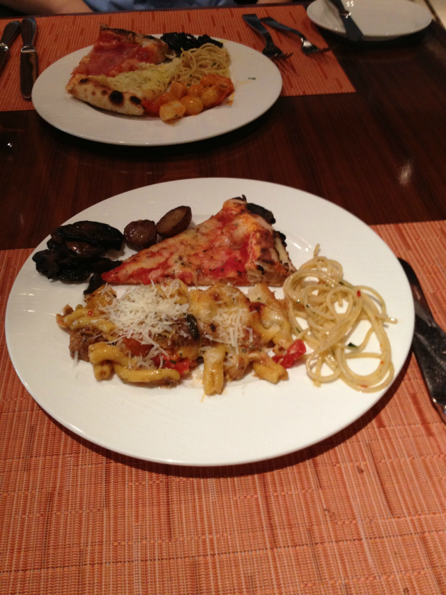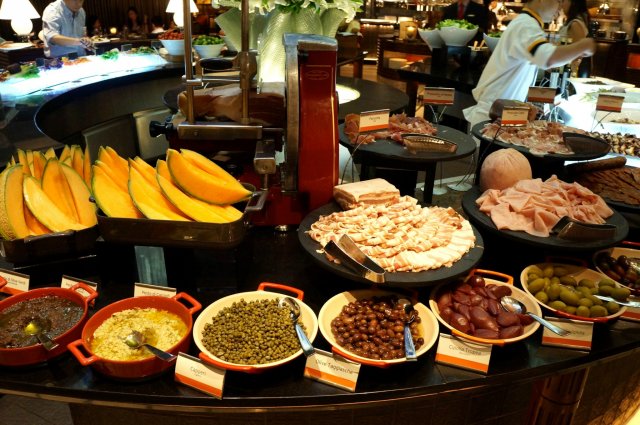 Basilico is an award winning Italian Restaurant located in The Regent Hotel Singapore. Basilico means (sweet) basil in English, always emphasises on using the fresh, seasonal in presenting their authentic Italian Cuisine.Basilico served two dining option: À la carte and semi-buffet. The semi-buffet option mean that you choose one main dish, to accompany the buffet of antipasti and desserts. No doubt you will be able to guess which option that we go for :) Once you are seated, you will be served bread sticks appetizer with mince olive dip. The bread sticks is freshly baked and crunchy. However, as we are not the people who fancy olives, we did not really appreciate it as much.We started our entrée with the antipasti and begun with something light. Seared Tuna, smoked salmon, Boccocino, Mozzarella Cheese and tomatoes. The Boccocino, Mozzarella Cheese and tomatoes are our favourite. We always order this as entree when we go to any Italian restaurant. It is a simple dish and just allow the ingredients to speak for itself. The same can be said here, the ingredients are fresh and the cheeses are lovely. The same can be said about the sear tuna, while smoked salmon was not overly salty, can be consider quite subtle good to pair with the cheeses.For the cured meat selections the selections are Pancetta, Prosciutto di Parma, Salami and Ham. Unlike other buffet, which they control the output of the parma ham, you can really satisfy yourself with the servings here. Served with slices of rock melon, I have to limit myself, remembering that there is still the main dishes to come.For the mains, I had the Crispy Pork Belly with Oven-Baked Apple. “Agretti” Salad and a Honey Cinnamon Reduction. The crackling is light and crispy, with similar texture to Cantonese roast pork belly. The meat tasted clean and not gamey, while the Oven-Baked apple and honey cinnamon reduction really balance the fattiness of the roast pork belly. Yummyy!!!Little Devil ('LD') ordered Tender Wagyu Rump with Oven-baked Potatoes and Braised Spring Onions. Although using only the Rump cut, the meat is tender and succulent. Cooked to her order of medium rare. The potatoes is slightly crispy on the skin and soft on the inside. The Au Jus is just flavourful.Meanwhile, Tracy's BFF, Lady Baker ('LB') satisfying her cravings for lamb. She had Grilled Spring Lamb Chops with Rhubarb and Ricotta Goat Cheese Cream, Green Asparagus. The lamb chops are small in size, I would say more towards a lady's portion. Consider LB asked it to be cooked to Well Done, it was well executed and the meat remain tender. Asparagus were sweet and crunchy, good with the Ricotta.For desserts, the selections are also impressive. Our picks are: The Bread and Butter Pudding which was very rustic and good. I paired it with a scoop of chocolate sorbet. Bonet (Chocolate Pudding with Amaretti Biscuits provide a good velvety chocolate flavour, while the Crema ai Lamponi (Raspberry cream) will give you a good sour perk up after the meal. For the rest of the desserts, just stick to those with chocolate, as the one without chocolates are quite ordinary.Although the Italian are renowned for the coffee, I was left disappointed with the coffee on offer here. I ordered a cappuccino, not only the coffee feels watery, it was burnt as well. I should have stick with black coffee with milk on the side. On the upside, I need to praise the bartender for coming up a good Lemon Lime and Bitters which I ordered in the beginning of the meal.The atmosphere here is just amazing. The dining section is dimly lid, which provide a very good atmosphere for romantic dinner. The space between table is sufficient to give you a slight sense of privacy. Meanwhile, round central section, is the centre stage for the food. It is brightly lid, with beautiful chandelier and semi open kitchen concepts on the East and West section of the circle. The service is very personalized and professional. One of the best service we ever experience. Big Thumbs up for the service.Overall, Basilico is definitely a place to go for Italian. The Semi Buffet is a must try and the ingredients are always at the freshest and authentic Italian. Kudos to the team for maintaining the consistency all these year. Cincin!! Cheers!!For the complete Chubby Botak Koala exprience, click / copy the link below:http://www.chubbybotakkoala.com/2014/07/Basilico-The-Regent.html…查看更多