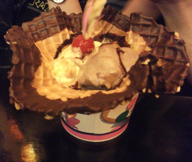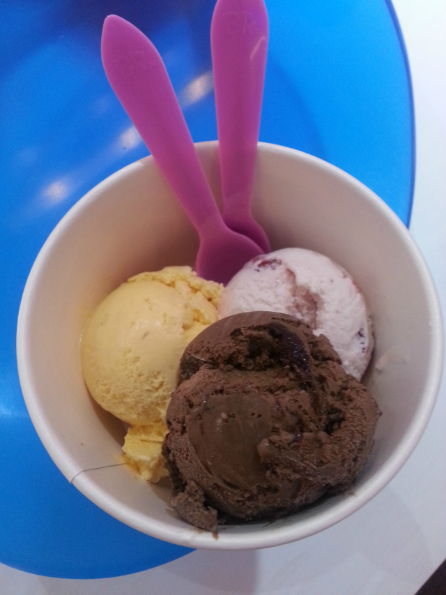 Baskin Robin has introduced more than 1,000 unique and yummy Ice-cream flavours since it existed. Having 31% promotion every 31st of the month, it was a must to grab for it. Not only selling Ice-cream, they also serving cakes and milkshakes.Their signature Waffle Wonders, I was choosing Vanilla and Chocolate Ice-cream with a little cherry on top. It looked gross but it actually melts fast, I was able to take a decent shoot before it was too late. Mousse and thick chocolate glut, it tasted heavenly desired. Not too sweet, the mixture of it was surprisingly good. It was $9.50, standard price for standard Ice-cream. Even if I eat one junior cone daily, I am sure that I won’t be getting sick of it. …查看更多