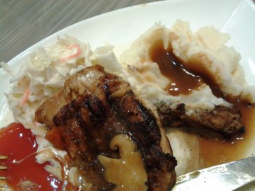 Always been loving the food from this BBQ Chicken outlet at Rivervale mall. Think most important is their service standard which is really good and always very friendly. The restaurant is also very clean and cooling, really comfortable. I will usually buy tbeir grilled chicken with mushroom sauce. The chicken meat is very tender and really juicy, and not much chicken skin can be found on it, which added that extra healthy factor to it. The mashed potato is smooth and quite big in portion too. At merely $14.90 per serving, is affordable. …查看更多