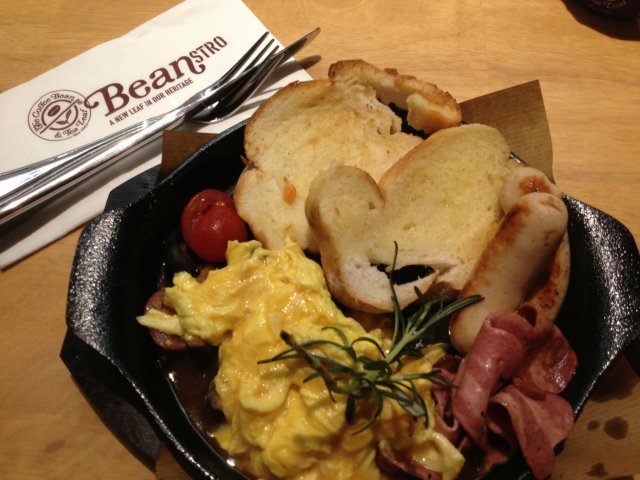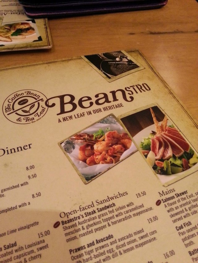 Set up just like a CBTL cafe with better chairs and tables, it may be hard to notice that it's a Beanstro and not just their usual cafe. To be honest, CBTL has never been on my favourite list, ever, for I'm really not a fan of their coffees. So, will the Beanstro impress me?Hmm, we'll see.And of course, no coffee for me, thank you very much. I'll go for a cuppa tea! For starters, we got a few 'finger food' snacks for sharing while we waited for our tardy queen to arrive. Hand-cut Calamari - $9Well, what can go wrong with a basket of well batter, deep fried squids? Near to nothing!The batter wasn't exactly very crispy and the squid wasn't exactly tender-chewy enough, but it was still packed with flavour to make this basket of fried squid pretty addictive.Mozzarella Fritters - $7I didn't really get to eat this, because the waiter came and cleared the plate even though there's still 1 whole, untouched fritter left on it. He didn't even bother to ask if he can clear it. Just reached in, grabbed the plate and left while we're engrossed in chit-chatting.BAD SERVICE, CBB, BAD SERVICE!Erm, any refund of the (perhaps) $2?But according to the rest who has eaten it, it's still 'not too bad' for a cheese lover.Morrocan Lamb Casserole - $16A pair of lamb Marquez in tomato stew done Moroccan style, overlaid with eggs and baked in a hot plate!CBB is quite a bad place to be taking pictures due to backlight in every corner and every single angle.But this dish is really delish! However, the serving is pretty small and if it's not for the 2 slices of toasted baguette and with the calamari, I might have left the place hungry. I can't really say I understand the point of adding 2 eggs on top of the dish, for it doesn't complement ANYTHING imo. Well, it might have been for the toasts, which were better off being paired with the tomato stew to begin with. So In the end, I pretty much gobbled down the runny yolks first (I really cannot imagine the taste of it getting mixed into the rest of the stew) before moving on with the rest of the dish. The lamb cubes were tender and savoury, and the tangy tomato stew simply brought out more of its flavour.If you're a lamb and tomato lover like me, I really recommend that you try this!Bangers and Mash - $18Oozing with cheese, grilled chicken snail sausage on Idaho mash with caraway sour cabbage and onion gravy.Classic Eggs Benedict - $17Two softly poached eggs built on toasted Vienna with chicken ham, lime vinaigrette mesclun and hollandaise sauce.Frankly speaking, I won't say that they're very affordable but the food quality is definitely there for a cafe (even though beanstro's concept is meant to be a casual dining restaurant, I still view CBB more as a cafe), and it makes the penny a little more worth spent. Service wise, they need to train the waiters not to clear off non-empty plates without asking the diners if it's alright to do so.…查看更多