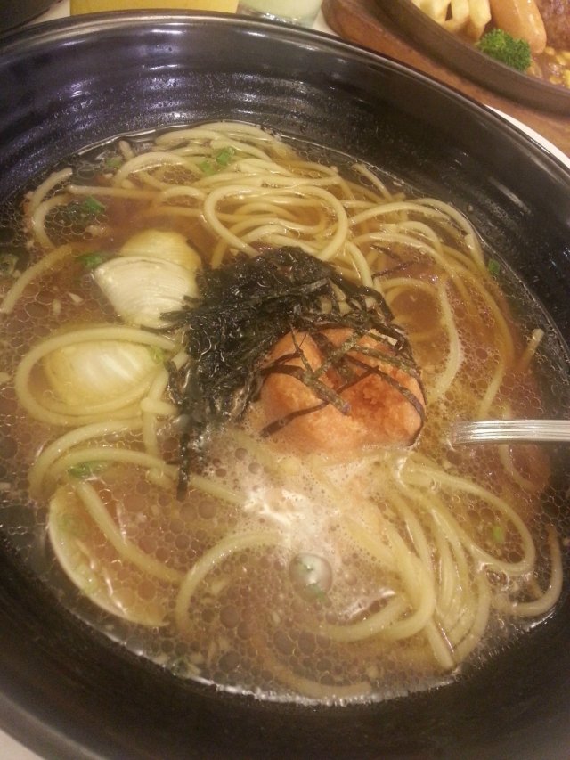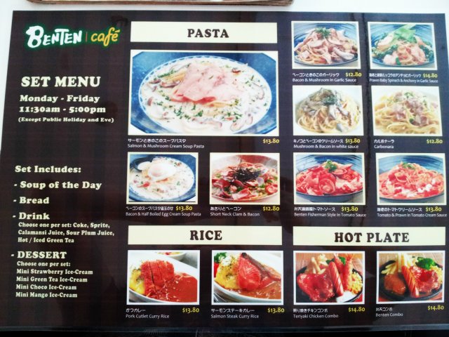 Being the only cafe restaurant in Jurong Point with no crowd during dinnertime, *Priscillia and I decided to have our annual Christmas meet-up here, since she recommeded that the food here was pretty good. Service was quick and efficient, no fuss, no muss, and the tiny restaurant cafe was well-maintained and clean.*Priscillia had the Salmon and Mushroom Pasta in Cream Soup (SGD$12.80), a large bowl of cream soup with lots of salmon and shitake mushrooms with spaghetti. This deceptively simple name and appearance concealed a rich taste that was addictive, especially whilst the noodle was still piping hot. The soup was sweet with flavours of its robust ingredients, and the noodles were springy.I was in a seafood mood that night, so I settled for the Seafood Soup Spaghetti (SGD$14.80) which was a huge bowl of clear broth filled with spaghetti, clams, squids, shrimps and seaweed. The soup was delicious as well, with the sweet infusion of seafood and miso; the noodles were springy and seafood was rather fresh. It made for a simple but satisfying meal.For full review and more detailed information, please feel free to visit:http://thearcticstar.blogspot.sg/2016/01/dinner-at-benten-cafe-jurong-point.html…查看更多