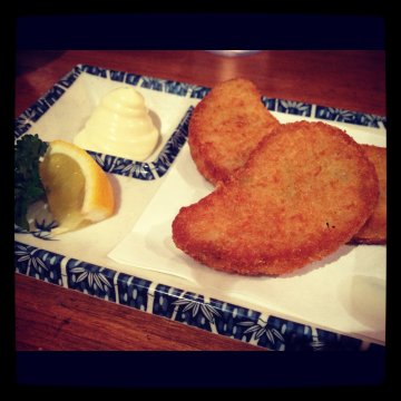 Ordered a salmon side dish as I wasn’t really hungry, while my friends tried out their ramen.It’s called the salmon croquette if I remembered correctly.It is served in a plate of 3 croquettes, at the price of $3.80.When it was served, it was warm and the outer was crispy ;DThe salmon filling was a little disappointing though, there isn’t much of a salmon taste…more of fish paste.I think they made the salmon in the form of paste, but would love it if there are more salmon.Since the salmon isn’t a lot and the size of the croquettes is not really big, it’s not really worth it.As for the ramen, I tried the soup and it’s quite tasteful and rich in taste. My friends had pretty positive comment on it too. So I guess it’s worth dining there after all for their main dishes.(:…查看更多