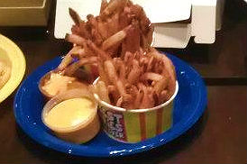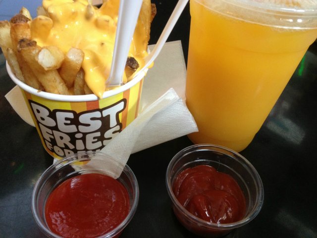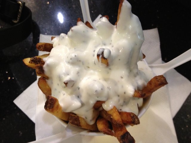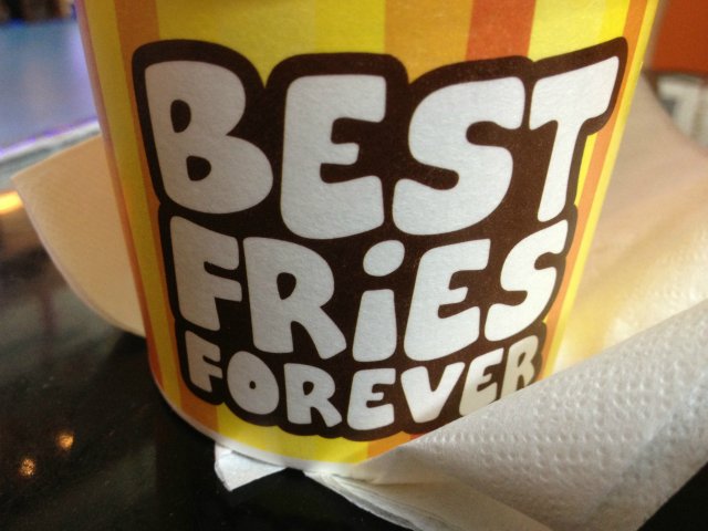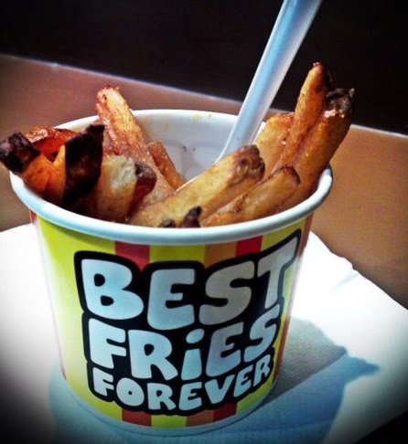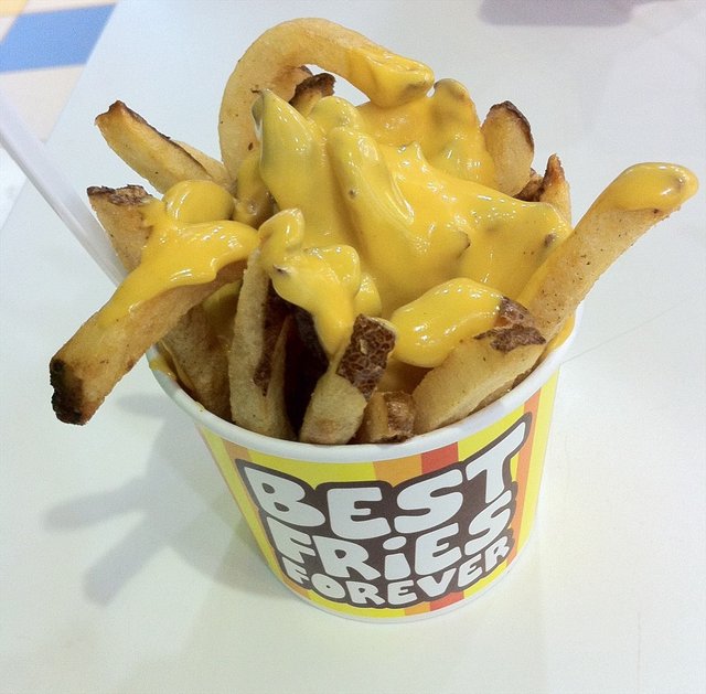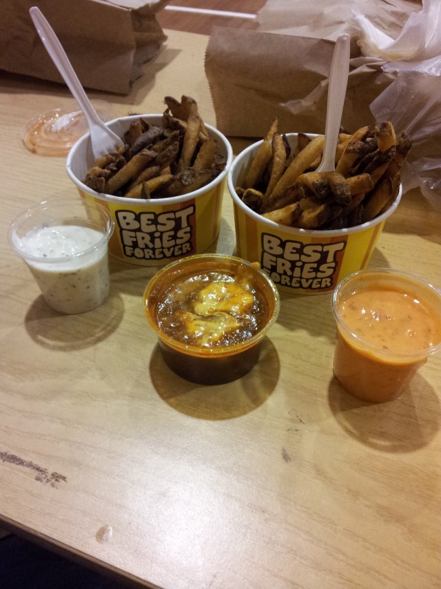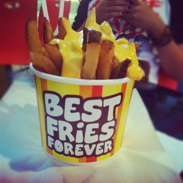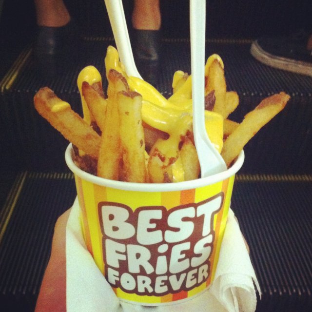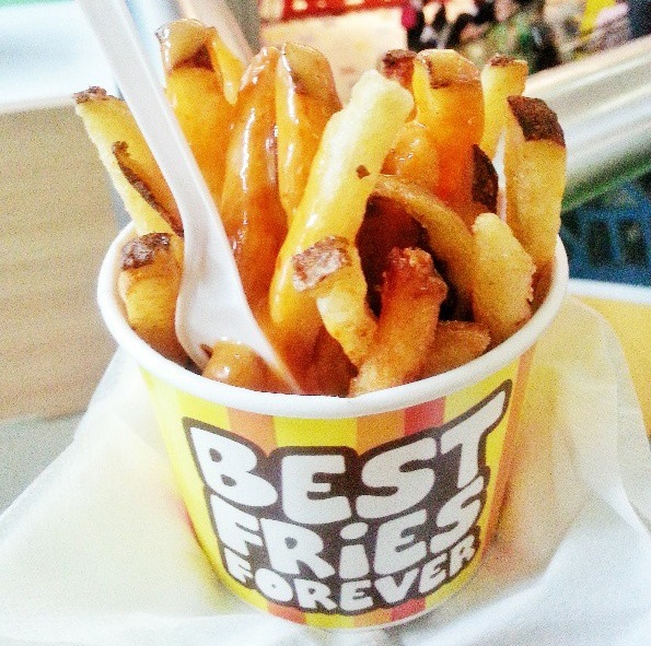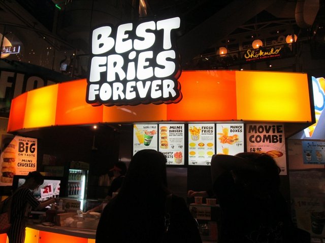 Recently I have bought a voucher worths $21.80 for $10.90 from an online deal website. The deal consists of 6 Mini Burgers + 2 Regular Fries from the outlet. The outlet is located next to the escalators, together with its sister outlet Cloud & Cream. There is 6 different kinds of dips to go with the fries : Macho Cheese (Oozin Macheesmo), Wow Wow West ( Chilli Beef + Cheese), B.B. Cute (Hickory Smoked BBQ), Friendly Fire (Chilli + Tabasco), Gusto Garlic (Groovy Garlic + Herbs), Ole Ole (Salsa + Cream Tango). One can try on the various sauces at the counter with fries before placing order. I decide on Macho Cheese and Gusto Garlic sauces to go with the fries as I like the nacho cheese taste and garlicy flavour. The fries with skin taste great when hot and even better with the sauces. But kind of flat when cold. The staff has thoughtfully packed the sauces in separate containers for takeaway. The mini burger is simply a beef patty sandwiched between a sesame bun. Looks kind of dry. I have to add chilli sauce to add flavour to the burger. The patty tastes a bit chewy and difficult to bite. Overall quite disappointed with the burgers. The only saving grace is the unique homemade sauces.…查看更多