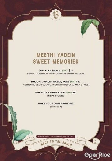 I tried the Bhoomi Jamun with rabdi and rose, and it was a beautiful twist on a classic dessert—the jamuns were soft and delicate, soaking up the fragrant, creamy rabdi with just the right hint of rose. It felt indulgent but light, a perfect way to end the meal.The Khapli Atta Roti and Gluten-Free Seeded Amaranth Roti were both impressive—each had a distinct texture and subtle nutty flavor that complemented the dishes perfectly. The rotis were fresh and hearty, great for scooping up the dal and curries.Speaking of which, the Dal Dera Ismaail was rich and comforting, with slow-cooked lentils that had a deep, earthy flavor and a hint of smokiness. It was a warming dish that tied the whole meal together beautifully. Overall, these dishes showcased Bhoomi’s care for tradition with a modern, thoughtful touch.…查看更多