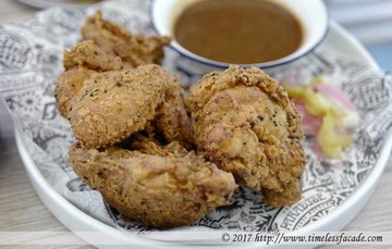 Bird Bird moved to the east a couple of months back and I chanced upon it while dropping by Cedele (a few doors down) one afternoon a few months back. I was hooked and made it a point to visit shortly after. Just for the record, I have been there quite a few times for lunch/brunch ever since. The Place Bird Bird occupies a corner unit along Frankel Avenue and parking is limited to the private estate behind (however you are free to park anywhere you like as long as you are able to evade the rather frequent patrols by the traffic wardens). The interior is kept simple with cement screed floors and wooden tables. Cornbread Waffles At $3 a piece, the cornbread waffles were relatively pricey. But by golly, they were worth it. Mildly sweet with a rather significant corn taste and served with smoked maple syrup. Definitely my kind of carbs. Just watch out - they get cold and limp rather fast so eat them while they are hot/warm. Black Truffle Mac & Cheese This was delicious; Al dente macaroni coupled with a light fragrance from the black truffle bits and a not too creamily rich sauce nursing a tinge of zest to keep nausea at bay. Topped with shavings of cheese and croutons for an extra crisp. Brown Sugar Bacon Chop I loved this as well. The thick cut bacon chop was seared and coated with a thin, brittle layer of caramalised sugar; sweet with salty undertones. A little different from the renditions of both Peter Luger and Clinton Street Baking, which do without the evident layer of sugar but equally delicious. Signature Fried Chicken Our order of half chicken consisted of 5 pcs from wing to breast. It looked absolutely mouth watering but unfortunately I found the seasoning a little underwhelming and not thorough enough. The meat was tender, juicy and moist but the skin was a little bland and lacked the oomph I was hoping for (in this respect, Southern Bird @ Marina Bay Sands does a better job). The signature gravy tasted like runny mashed potato gravy. Maybe the other chickens taste better? Durian Softie Pie An absolute crowd pleaser, the toasted milk softie had a light browned taste to it without coming across as too sweet. Topped with a generous scoop of durian pudding, white chocolate, sitting on an almond crust base and drizzled with gula melaka caramel for an added sweetness. Delicious and definitely a great way to end off the meal. Bill Brunch cost the 2 of us ~ $81, which isn't exactly cheap but I think it's worth the price for the above average quality of food in general. Service is decent but just be aware that the ventilation isn't great so you will walk out of the place smelling like your meal. Weekday lunch sets offer a much better value proposition so it would make better sense to go during lunch (you can even top up $5++ for a durian softie!) Truffled Housemade Curly Fries ps: The truffled housemade curly fries are really addictive; thin and crispy without all the oil (definitely a misperception).Final Verdict:Ambience: 6.5/10 (can get a little noisy and ventilation isn't great)Service: 7/10Food: 7.5/10 (8/10 for the durian softie)Value for money: 7/10Overall: 7/10Address: 97 Frankel AvenueContact: 6694 8270Opening Hours:Tuesdays - Sundays11.00am - 11.00pm | Last orders at 9.45pmClosed MondaysWebsite: https://www.facebook.com/birdbirdsg/…查看更多