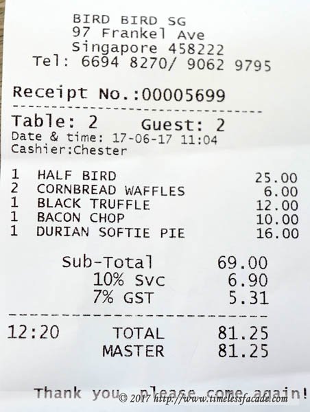 Bird Bird (新加坡) 網址: https://s.openrice.com/eKbSB01Nma200 地址: No. 97, Frankel Avenue, Siglap, Singapore 電話: +65 6694 8270