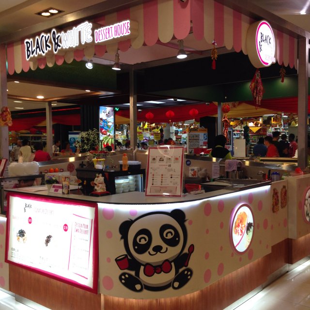 There is a cute and pretty-in-pink dessert kiosk at Sembawang Shopping Centre, which is called Black & White Dessert House, with the "Black & White" being an allusion to their mascot panda.There are currently 4 signature desserts on their menu: Signature Grass Jelly ($4.90), Signature Smooth Beancurd ($2.90), Osmanthus Kanten ($2.90) and Refreshing Ai-Yu ($2.90). Each of these comes with a variety of fixed toppings. For example, the Osamanthus Kanten comes with kanten, lotus seed, aloe vera, and black sugar kanten with osmanthus sugar syrup on shaved ice. If you don't like some of the toppings, or if you have other toppings you prefer to get instead, you can always Design Your Own Dessert here in 4 steps:Step #1: Choose the base: Grass Jelly, Cold Beancurd, Kanten or Ai-Yu Jelly ($1.20 each)Step #2: Pick the ice flavour: Plain (no charge), Passion Fruit, Winter Melon, Watermelon or Honeydew ($1.50 each) Step #3: Add your toppings from a list of: Red Bean, Taro Ball, Peanut, Lotus Seed, Aloe Vera and so on ($0.80 each)Step #4: Syrup Topping (if any): Caramel, Gula Melaka, Honey or Pandan SugarPretty interesting if I may add!I decided to get one of their signature item to try, the Refreshing Ai-Yu, which came in a big and cute foam bowl with their "black & white" mascot on it.Refreshing Ai-Yu ($2.90)The photo doesn't do the dessert any justice. The kind auntie actually packed it almost to the brim in the bowl but I didn't eat it right away and by the time I reached home and actually managed to sit down to enjoy it, the shaved ice has mostly melted, although there was still sufficient amount of the shaved ice left for me to enjoy this! This dessert has Ai-Yu, Yogurt Magic Ball, Colorful Konnyaku and Aloe Vera with Honey Syrup on Plain Shaved Ice. The ingredients are quite fresh and the Ai-Yu is smooth. The honey also adds a touch of sweetness to the dessert. My favourite topping here, other than the Ai-Yu, is the Yogurt Magic Ball, which will add bursts of slight sourness to the dessert with each bite. Pretty refreshing!Premium Soy Milk ($1.50)This comforting drink is not only fresh, but is also quite smooth and easy on the throat. It is not too sweet, at least for my taste. Overall, the prices are quite decent, especially for their signature series which comes with various toppings. The service is also pretty good here. The auntie who served me when I went is quite friendly and approachable. Call me superficial, but I would also like to give the thumb up to their pretty stall set-up and cutesy brand image, which they have obviously put some effort in. Taste-wise, my first impression of their desserts is quite favourable, especially for the Refreshing Ai-Yu, which is really quite worth it despite the mishap on the reduced portion size due to the melted ice (but that was really my fault). I'd definitely recommend giving their signature items a try!…查看更多