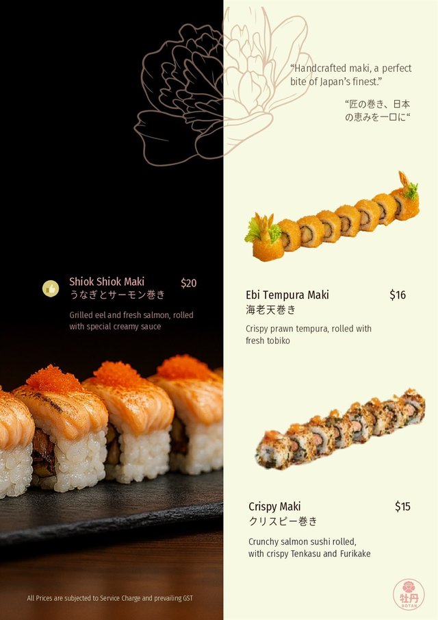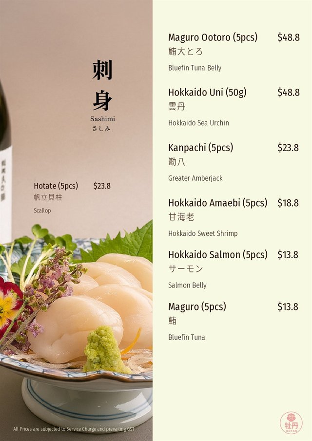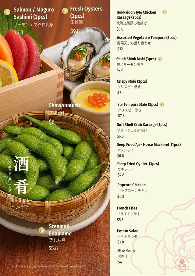 Botan Izakaya (新加坡) 網址: https://s.openrice.com/eKbSB01d1K000 地址: Far East Square, 36-37 Pekin St #01-01, Raffles Place, Singapore 電話: +65 9271 5004