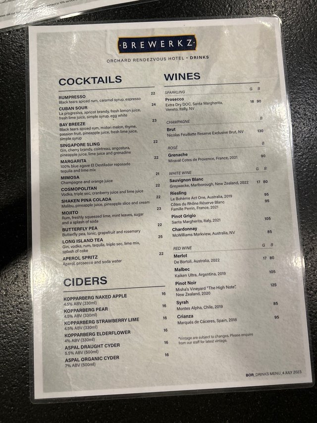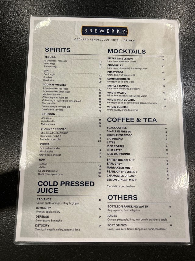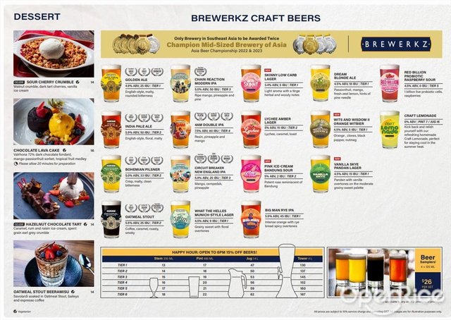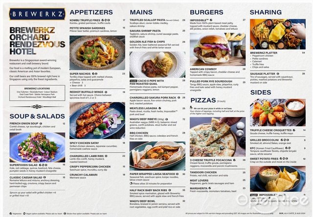 Brewerkz (新加坡) 網址: https://s.openrice.com/eKbSB01rN0100 地址: Orchard Rendezvous Hotel, 1 Tanglin Road, #01-08, Orchard, Singapore 電話: +65 9012 6154