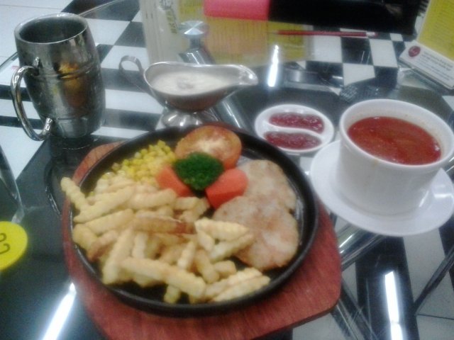 We visited Bruce Café located amidst the lush greenery of NUS U-Town, a Bruce Lee themed café that truly lived up to its name in terms of décor and overall atmosphere. Borsch Soup ($2.80+) The soup was hearty and flavourful, without that Campbell’s taste found in so many other Borsch soups. I found the chewiness of the beef bits complementing the mush greens boiled with the tomatoes in it, with a little bit of sour zest that kept me wanting for more spoonfuls. Hot Plate Pork Chop ($8.80+) I found the pork chop to pale slightly in comparison to the soup, owing to the dry and mediocre texture of the meat which even food stalls in coffee shops far better (thus far). Perhaps the meat was too thinly sliced and hence overcooked on the hot plate it was served on. The sides – which included grilled tomatoes and mixed vegetables – seemingly stole the limelight, for once. I was quite please with their service level (water was refilled promptly, waiter was courteous, response was quick etc…) In addition, the café also spots of a games corner well stocked with popular board games such as Catan, Saboteur, Risk etc…Overall, this is a nice place to simply chill with a group of friends for supper and games. Foodwise, however, there is definitely room for improvement. …查看更多