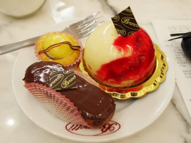 Brunetti is an Italian cafe (or Roman Pasticerria) that interestingly started in Australia and has many outlets there now. It expanded internationally and now at Singapore's very own Tanglin Mall, we have a branch serving aromatic coffee, delectable-looking pastries and lovely gelato! The cafe's decor is rich in authentic Italian flavor and hues, transporting one to another world literally.I chose to try the Cappuccino (SGD$6.50) which had a lovely taste to it, as Italian brew goes.Although we were full from lunch, we just couldn't resist some pretty little desserts at Brunetti. Hence, it was a good thing that they have these dainty miniatures of the original cake slices. We had a mini Lemon Tart, mini Opera Cake and Mud Cake Mignon at a mere SGD$2.90 each.The Lemon Tart was pretty good - refreshing citrusy lemon curd surrounded by a crumbly crust that was light and fragrant with butter taste.The Opera Cake was pretty good as well, the almond and coffee gelled really well together to give the cake a sweet union of flavors.As for the Mud Cake Mignon, it was a little disappointing because the cake was very hard and dry in texture. The chocolate taste was redolent but the hardness of the cake did not sit well with us.For full review and more photographs, please feel free to visit:http://thearcticstar.blogspot.sg/2015/03/afternoon-tea-at-brunetti-cafe-tanglin.html…查看更多