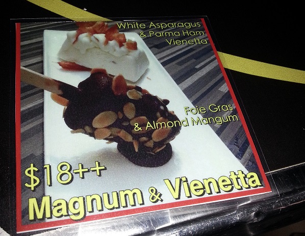 My friends and I decided to have a drink on Christmas Eve. We headed to Brussels after dinner. We were approached by the staff to try on their Christmas special menu. I decided to give it a try on the special edition appetizer called Magnum & Vienetta @S$18++. It is actually the white asparagus & parma ham with vienetta ice-cream and foie gras & almond magnum. The combination triggers my interest so I decided to give it a try. I was quite disappointed with the presentation and the portion given. As for the taste wise, I don’t feel the combination taste right. White asparagus with the vienetta ice-cream taste bland and the parma ham tasted much more stronger. Taste of the foie gras is there but I think the combination with magnum ice-cream tasted weird. I can’t taste the magnum taste too. …查看更多