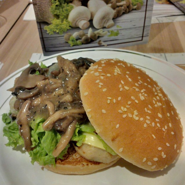 Gourmeiji Mushroom Swiss Beef Burger with Creamy Tomato Fries