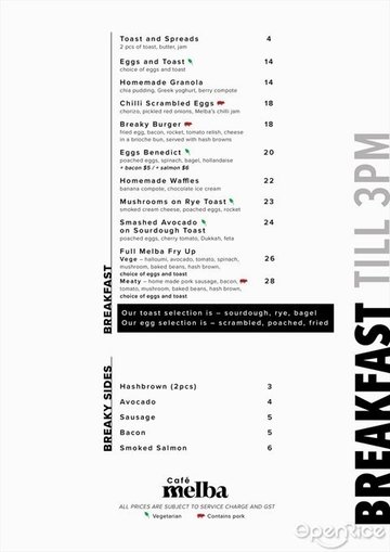 For the full review, click / copy the link below:http://www.chubbybotakkoala.com/2016/05/cafe-melba.htmlThe name Melba is inspired from the blend of Melbourne and Asia cuisine. Located in Goodman Arts Centre, Café Melba offer a unique dining experience. It is a family friendly cafe hidden in the tranquil garden of Goodman Arts Centre, with indoor and outdoor dining area plus plenty of space in the yard and designated children playing area for the little one to run around. The food on offer definitely reminds LD and I of the time we were back in Melbourne. Such as Crayfish Pasta ($27). This simple looking spaghetti are infused with crustacean broth. The pasta is al-dente, robust, and well complement the fresh crayfish. The rocket salad add a slight bitterness to the dish, however it is definitely a pasta dish that you don't want to miss. During the weekend, they have a special Weekend Roast on the menu that rotate weekly. On the day, it was Roast Pork ($30). The roast pork was on display in the kitchen passing area. It was just so inviting, we decided to order one. Three beautifully roasted cut pork saddle, served with Yorkshire pudding, roasted vegetables and apple sauce. The meat is tender, succulent with a nice balance between meat and fats. The cracking is crispy with a bit chewiness, typical in western style roast pork. For a good measure, they also include a few crispy pork rind. The yorkshire pudding is about the size of your fist, eggy and definitely goes well with your pork and roast vegetables. The apple sauce is infused with vinaigrette to balance the fattiness in the dish. The only thing missing here is the au jus or gravy, something for the yorkshire pudding to hold on. Ticking off one of the must try food list, I ordered Reuben Sandwich ($24). A thick solid slices of corned beef, topped with sauerkraut, melted cheese and Russian dressing in between rye bread. The portion of the sauerkraut is the same as the portion of the meat. On my first bite, the sourness really hits me, follow with tanginess. Though the sliced corned beef is tender, I just feel sourness in every bite onwards. I was not what I expected. If I ever order this again, I will definitely ask them to cut down on the sauerkraut portion or serve it on the side. We also drop by during one of the weekday and I had the Roast Chicken. A perfectly roasted spring chicken, with a nice paper crispy skin. The meat on the breast is moist and the same can be said on the thigh and drumstick. The au jus really boast the flavour of the chicken. End result, I clean up my plate and left with just the clean bones, my homage to a perfectly cooked roast chicken. However, during the weekday visit, we also notice the inconsistency in standard of cooking. The steak on that day was done pretty ordinary. Though it has the grill mark, it did not seal the juice in the steak. LD was disappointed with the steak on the weekday. Moving on to desserts, Chocolate lava cake ($14) is a must try. Had this on both of our visit. Solid chocolate flavour on the cake and on the ozzing thick chocolate fillings. On the side was chocolate crumbs, berries and crumbs, provided a contrasting crunchy texture and nice topping for the berries sorbet. Granny's Apple Crumble ($12) is also a good pick for dessert. The apples is chopped to mini cubes, well coated with sugar and baked to soft yet remain crunchy. The crumbles was slightly chewy, while the vanilla ice cream provide a nice finishing to the desserts. Of course an Aussie cafe will not be completed with Lemon Lime Bitters ($8). A little bit overpriced, but definitely worth the money. The mix of Angostura bitters, lemonade and lime cordial was spot on. If you want something more healthy, try their Mango Smoothie ($9), fresh, thick and creamy. The décor in Café Melba is bright, airy, with see through glass windows and doors surrounding the restaurant. There is a flow between the indoor and outdoor dining area is very seamless. For indoor dining, the menu and order can be done through the tablet available on each table. While outdoor, still using the traditional way. Service is good, though it can be hard to get their attention sometimes. Overall, LD and I really enjoy dining at Café Melba. The food is good, the place is bright, comfortable and family friendly. If you are looking for a place to enjoy your leisure dining during weekend or weekday, this is a place to try. Cheers Mate!!…查看更多