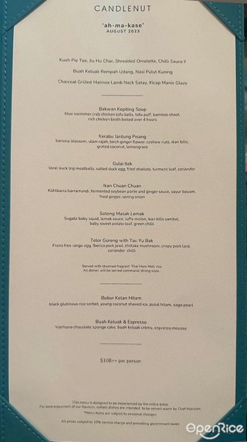 Full review's at http://thehungrybunnie.blogspot.sg/2015/10/candlenut-kitchen.htmlCandlenut's Peranakan fare is exceptional. Familiar favourites and modern interpretations, given equal billing, are executed with both polish and flair. And, prices are wallet-friendly.BUT, I find Candlenut's restaurant policies lacking in sense. For starters, there is just ONE multi-course set for dinner, with no exceptions for ala carte orders whatsoever. To compound matters, tap water is not served at all, only bottled water is available, so even though we had ourselves a glass of wine and lemongrass ginger juice, we still had to purchase a 500ml bottle of mineral water at the exorbitant price of $4. Honestly, it's a major turn-off that a restaurant is as rigid as this.Dinner was a Set Tasting Menu ($50) of 12-courses, refreshed seasonally. Even if each course was considerably petite, 12 courses added up substantively to a most value-for-money dinner if I ever saw one.We had:1) Kueh Pie Tee: served DIY and scrumptious2) Warm Minced Pork Relish, weaved with punchy banana chillis, black peppercorns, aromatic laksa leaf strips, and presented atop a lettuce bed.3) Grain-Fed Australian Beef Flank Satay burnished in a stickily sweet peanut sauce: so meltingly tender and juicy, I wouldn't have known it was beef if I hadn't been informed otherwise.4) Tumbuk Prawns, the last of the quartet of appetizers, was served chilled, speckled with laksa leaf, chives, and raw shallots: wonderfully clean and clear; its refreshing overtones enhanced by the starfruit slice.5) Rawon Soup - fork-tender beef cheeks in a buah keluak-spiked soup spiked with chilli: robust and spicy6) Chap Chye, a melange of cabbage, shitake, dried beancurd skin, and glass vermicelli softly braised in a delicate prawn stock: Excellent, one of the best renditions of this classic.7) Blue Swimmer Crab Curry - impossibly sweet chunks of freshly shredded meat flash-cooked in a mild tumeric coconut milk curry, while kaffir lime leaves lent a piquant touch: So freaking good.8) King Tiger Prawn, wok-fried with pungent petai beans:succulent, fiery and sweet9) Ayam Bakar - chicken fillet grilled to a smoky perfection with kicap manis, shallots, and green chillis.10) The contemporary desserts here were exemplary, like the Candlenut Signature Chendol Cream, a panna cotta-like pudding layered with pandan jelly and sweetened with gula melaka.11) A lighter option was the zesty Mango Cream with Lime Sorbet, dotted with jackfruit, and sago pearls…查看更多
