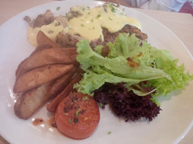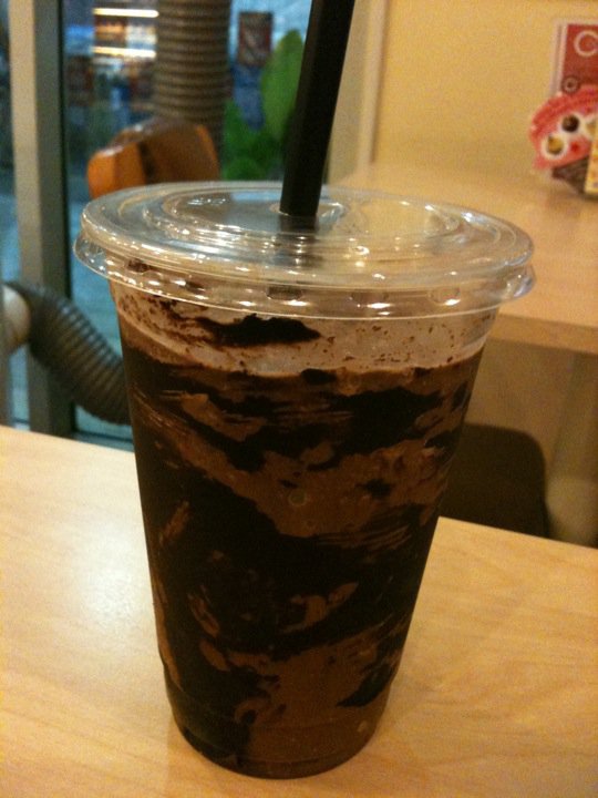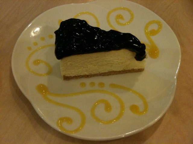 this is the classic cheese cake that has been offered in store. Have been looking for sweet treats in this area after having bah kut teh @ ya di bah kut teh. So found this place, when we walked in, was told by e service staff that only ramen, desserts and beverage were available. After looking through the menu and wanted to order dessert, was told again that as the pastry chef is on leave, only cakes on the display shelves is available. Real disappointment comes in when our orders came in. Our orders were: Banana Chocolate Smoothie, Classic Cheese Cake, Hazelnut Latte and Ice Chocolate.Banana Chocolate Smoothie tasted more like Banana Milkshake, whole mouthful of banana taste;without an taste of chocolate.Ice Chocolate tasted more like Ice Fresh Milk; not even a hint of taste of chocolate.Classic Cheese Cake; as shown in the picture attached. Flakey base, Buttery hard cheese layer and Discoloured strawberry garnish decoration. Obvious that they had taken a slice which is not from the shelf and it is not fresh.Overall, the only 'normal' food is Hazelnut Latte... Conclusion, will not step into this place again...