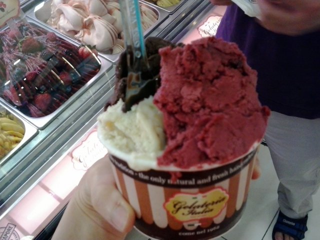 This is my third time to Gelateria Italia and I enjoy drinking their Gelato Frappe. This is a Pistachio Frappe. They take a scoop of Gelato, weigh it and then put it into a blender full of ice and milk and TA-DA! You get your Frappe. Sadly, however, this does not work with some of the more bland flavours. The Matcha one didn't turn out well, it tasted too bland. They do add quite a bit of ice in the drink. My favourite is the Forrest Berries Frappe. It goes well together with the milk! So take alook at all their wonderful gelato flavours. The biggest hype about gelato is that it is less fattening than ice cream so do give it a try, with a less guilty heart.Here is a list of all their flavours. Credit: http://img.grouponcdn.com/deal/x2JEJWvr4Yo11CqPHN1X/Q8-430x503…查看更多