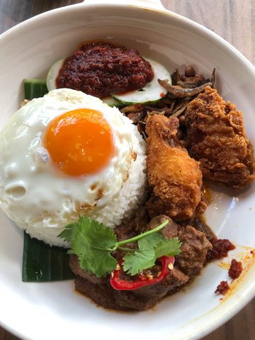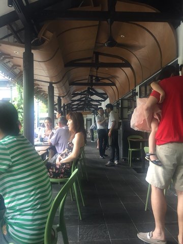 Mui Kee 妹記生滾粥品, which was from Hong Kong, was having a 6 months pop up at this cafe from 30 June to 31th December 2017, Tue - Sun : 7.30am - 3pm. Beware of insects and other bugs around while dining. Make sure you not eating one of them. Make sure they are not crawling on you. Felt so tourist brunching here, surrounded by doggies around.Thought a table was empty. Turned out someone tied the dog to the table to chope the table. Asked the next table who couldn't answer. Waited about an hour for the food to arrive, as porridge just ran out when I placed order. Else it would be about 30 minutes.Fish Belly Porridge (S$14.50)Served with a side of dough fritters & century eggOne could taste that the fish belly had gone through stir fried with rice wine before adding to the porridge. There's a distinct soya bean milk aftertaste in the porridge. Homemade Pork Meatballs Porridge (S$12.50)Served with a side of dough fritters & century eggThe meatball porridge was pretty bland, comparing to the fish belly porridge. Drunken Chicken (S$10)The chicken was tender but surprisingly sweet in taste and lacking of the alcoholic taste which associated with the dish. Pig's Innards (S$9)Not sure why but the dish was served with porridge like grain. The pig's liver was a tab too rare and quite veiny too, making it quite an effort to chew. The intestine had lingering bitter taste.…查看更多