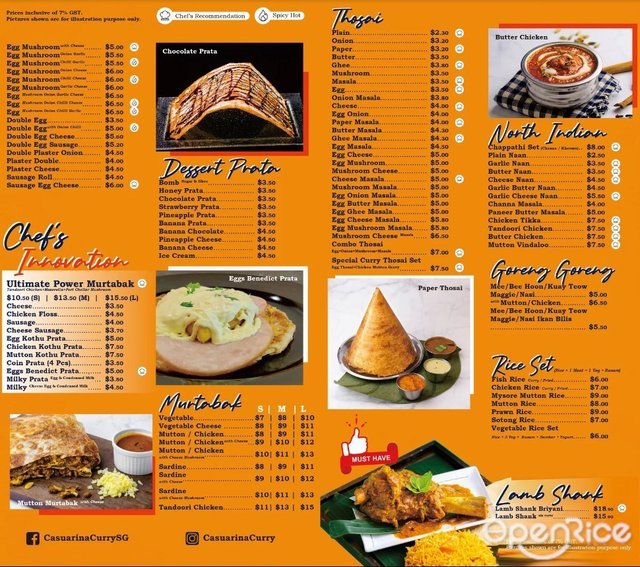 Casuarina Curry (新加坡) 網址: https://s.openrice.com/eKbSB01gLm000 地址: 136-138 Casuarina Road, Upper Thomson, Singapore 電話: +65 6455 9093