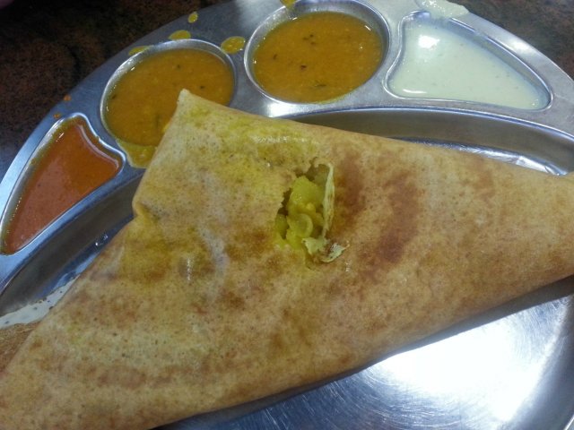 Love this prata house as they serve a wide variety of different kinds of prata and indian flavoured rice and dishes. This thosai is really good with the orange and white sauces at the side or just with plain curry that you can request for. The teh tarik is also really aromatic and milky and is really good. Have it either warm or cold and both are just as good.Great as a thirst quencher. Tried the egg thosai which I felt was a healthier option compared to prata but of course the pratas here are nicer than the thosai as they are more crispy but nonetheless, the thosai was not bad.查看更多