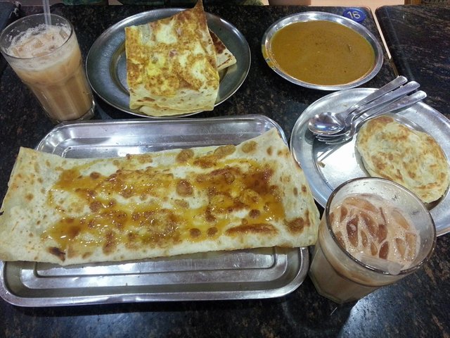 When we arrive at the shop,we were served to our table quickly and the waiter pass us the menu. We ordered for plain prata, paper prata, egg prata and drinks- iced the terik!The plain prata is good and crispy as the quality is always consistent whenever I'm back. The egg one has a savoury taste as i prefer this over the plain one though this might be a bit more oily. And the paper prata is more crispy and bigger piece as compared to the plain/egg prata and non- chewy kind. It tasted more like snack than a main to eat. haha. The curry served was sufficient for our pratas and there's sugar by the side too.It was a fulfilling meal and it is value for its money. I will visit them again! Ups.查看更多