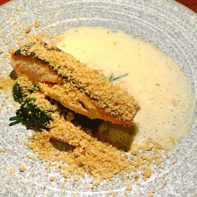 Pan Seared Tasmanian Salmon with Salted Egg & Cereal Crumble