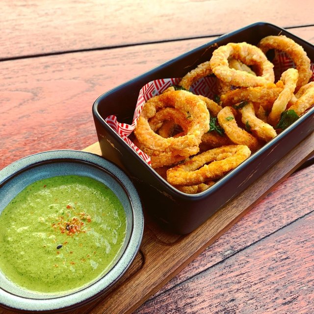 Tandoori Spiced Crispy Squid with Coriander-Jalapeño Dip