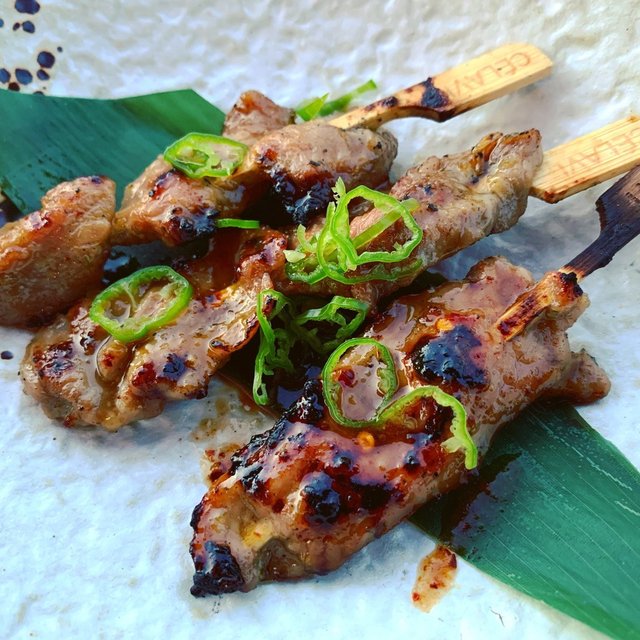 Binchōtan Grilled Iberico Pork Satay with Sanshō Chilli