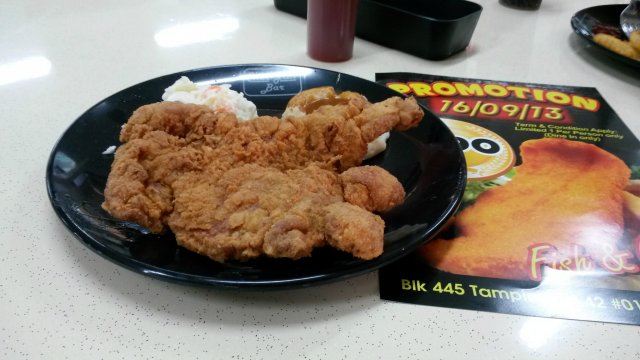 This Char Grill Bar is one of my favorite place to patronize as its really very near to my school! That coffeeshop is rather empty, with only a few stalls opened in the afternoon and the food served at the other stalls are just simply normal. This Char-Grill Bar serves a different variety of food, ranging from burgers to pastas to chickens to fish at very affordable price. You can also choose two side dish for every main course purchased and the side dishes have been categorized into cold and hot side dishes. Cold side dishes includes garden salad and potato salad. As for the hot side dishes, there's California Raisin Rice, Cheesey Pasta, Onion Rings, Fries and Mashed Potato. We ordered the Ham and Sausage Pasta ($5) as well as BBQ Chicken Chop ($6). For the pasta, the tomato sauce used is kind of unique, sweet and also a little bit spicy. They are also very generous on the amount of ham given. Noodles were of great quality and dish was served quite fast. As for the BBQ Chicken Chop, the sauce is very 'SHIOK' and the amount of french fries given was also very generous. The Onion Rings are very addictive and it really tastes like real onion. As for the chicken chop, its grilled till prefect, accompanied by hot piping delicious BBQ Sauce. One of the best western in Tampines! …查看更多