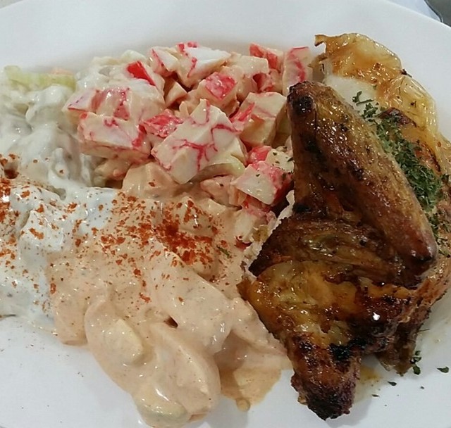 Portuguese Chicken (Spicy) with Coleslaw/Seafood Salad & Spicy Rice