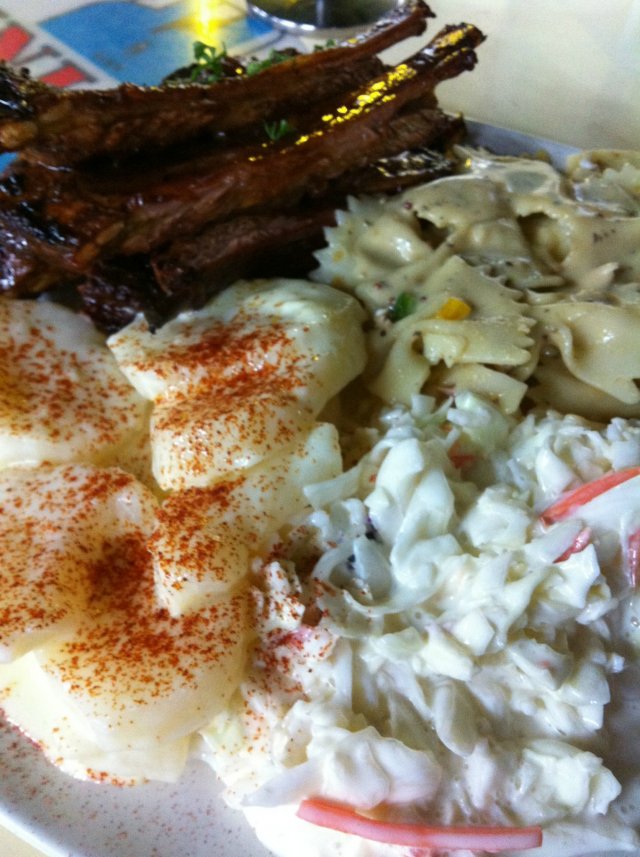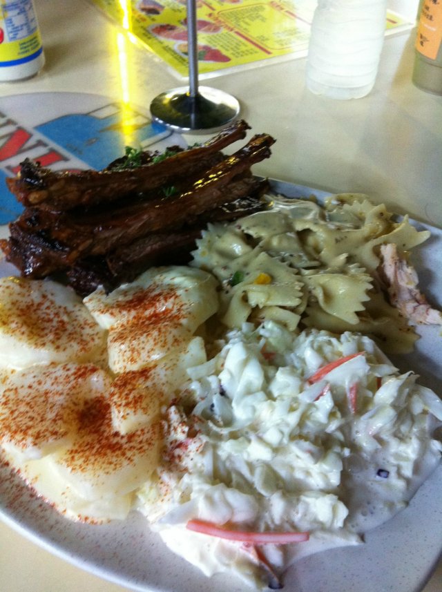 A couple of years ago, we were introduced to Charco's.Situated in AMK at the time, the draw of this place was that it served authentic BBQ Ribs and a special Roast Chicken at an affordable price.However, the ribs were Lamb Ribs.When we tried it a few years ago as a Father's Day treat, there seemed to be more fat than meat on the ribs.Firstly, we're talking lamb ribs so automatically the size is smaller and the on top of that the fat outweighs anything else of the plate. So I wasn't really impressed with the whole thing.So recently I'm told that Charco's is now serving Beef Ribs as well so obviously I have to check it out right?The only way we could get Beef Ribs is when we go to KL and makan at Hard Rock, Tony Roma's or Chilli's but it looks like finally we might have it right here!And to make it even better - Charco's has relocated to Marine Parade!The one thing that they still have is their Salad Bar.So you have a choice of Caesar's, Seafood, Tuna Pasta, Egg, Greek, Potato, Chicken Avocado or good ol' Coleslaw.You can get it ala carte at in either 2 or 3 salad choices on a platter in Regular or Large Sizes. (Between $5.70 to $8.80 depending in your choice of salad)Or you could buy a meal when you order your meats which come with a choice of salads which may be more worth it in the end.You'll see what I mean in awhile.All this talk of salad alone is making me hungry.Bring on the meat!So my darling wife decided to choose Caeser's salad, Egg Salad and Coleslaw.I have to say this - the Egg Salad was THE BOMB!!On my plate you can see some peas (which were surprisingly tasty!!) and Charco's 'famous' Creme Potato.It's basically potatoes in cream with some chilli powder sprinkled over it.And I remember it being bloody delicious from our previous visit to the AMK branch all those years ago so I thought it would be a good idea to get an extra serving of veggies.More peas and more Creme Potato.Add in a Corn-on-the-Cob and some roasted potatoes and you have a healthy add-on side dish!But to be honest the Creme Potatoes seems to have lost their magic. I remember they used to be slice a lot thinner which seems to make a difference. Or may it was just Potato Overload.Okay okay enough about the vegetables and the side dishes.Let's get down to business and talk about the actual ribs.Actually the reason I've been putting off talking about the ribs is because I'm in a bit of a quandary.After tasting it ourselves and then later checking with my brother how it was when they had his meal there (my brother and his wife were the ones who alerted me to the Beef Ribs), I think I'm going to find it very difficult to come to a conclusion on this one.These were the ribs served on my wife's plate.See the one on the left and compare it the one on the right. This is important.Taste-wise I have to say that the ribs were delicious.They had the nice smoky taste and the BBQ sauce was excellent. Not too strong at all.But the next part is the problem.The rib on the left was perfect apparently.Nice. Juicy. Tender. Fell off the bone when you pulled it with your fork. Sounds like a delicious Beef Rib!But the one on the right...The rib on the right (aka The Right Rib) was a different story altogether.It was on the tough side. You really had to use your knife and put some elbow into it.Taste was still there. But definitely not as tender as the one on the left. An obvious case of overcooking the meat which caused it to dry out.And the photo at top of the post?Those were the ribs on my plate and you can see they look exactly like The Right Rib on my wife's plate so that means I got all dried-out ribs.As you can see - on the left it looks juicy and delicious but on the right it's dry and stringy.And I was quite disappointed actually. It was a waste of meat. Bad enough we didn't have much choices in SG and it turned out that the one place we found was serving dried-out meat.And then I called my brother and asked him about his experience about a week ago and he claims that ALL of the ribs they got were tender and juicy!!Hmmmm.... so this could either be a case of inconsistent cooking or my bad luck I got the wrong ribs...Well it looks like we'll probably have make another trip to Charco's to test our theory and decide once and for all if this is the real deal for Halal ribs.Oh and by the way. Just few more notes.Charco's has quite an extensive menu for the whole family. You have chicken, beef, lamb and fish in dishes ranging from kebabs to rolls, served with veggies or rice and even a kids menu.(One of the items I'm gonna try next time is the Schnitzel!)But one item I'd actually advise you to avoid is the Mushroom Soup.Looks delicious I know but it's not that great.It's actually the instant powder type (not even Campbell's lor) and they make some modifications.I'm not saying it's terrible but if you're the type (like me) who expect to have a proper fresh made mushroom soup then you should give this a miss. The $3.50 price tag compounds my decision to advise you to avoid.For those of you who are curious, that's the Charco's Portuguese Chicken.They actually have two types;The Herb Chicken which is milder I guess and the Portuguese Chicken which is more robust in flavour and spicier by the looks of it.You can order 1/4, 1/2 or a whole chicken and as usual you have a choice of the side dishes you wanna pair it with.Unfortunately we didn't order it this time so we can't give you a proper review but Fadhilla and Aziz Rai say it's juicy and tender and pretty worth the money. 1/4 Chicken with 3 Salads will cost you $11.00.Charco's also offers Family Feasts which gives you a helluva lot of food for a helluva lot of people so you might wanna check it out if you're gonna have a family reunion there soon. Don't worry Charco's. I promise to return soon and try your ribs again.Let's see if you can give me some consistency the next time and not a slab of dry meat.…查看更多