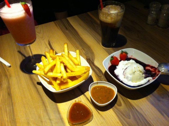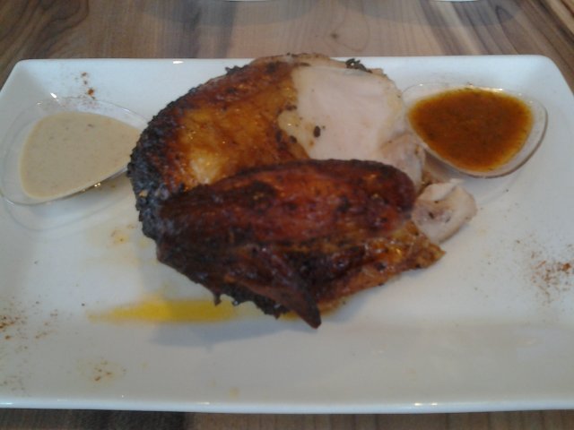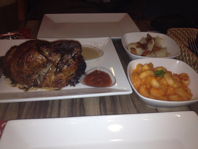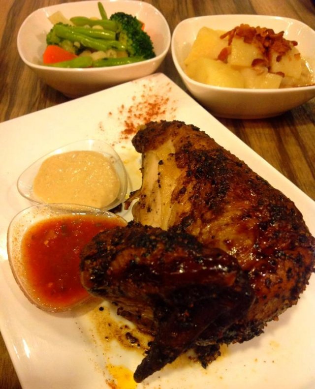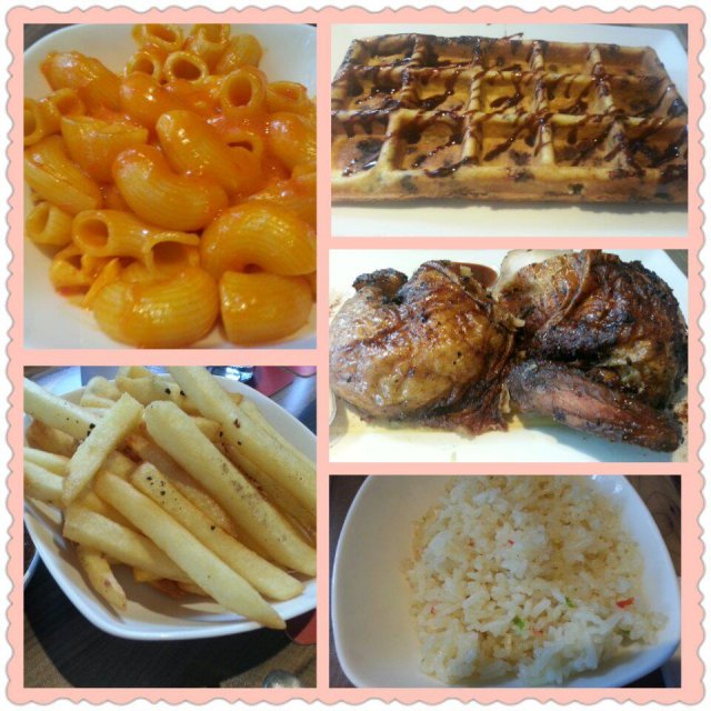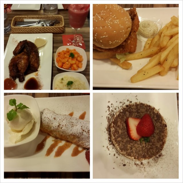 For full review - http://midas400.blogspot.sg/2014/08/late-lunch-at-charly-ts-i12-katong-mall.htmlMy friend Wendy got invited again to a food tasting session and I got to tag along to try out Charly T's new Weekend Free Flow Sliders & Beer promo at only $38+ (available on Sat/Sun 12-3pm). We will also be sampling Charly T's Original Recipe 'Best Chicken in the City', the well known signature dish served here.We arrived at around 1pm on a Saturday afternoon, and was quickly seated and placed order for their featured dishes. The modern bistro-style restaurant has an open concept kitchen showcasing chefs hard at work churning out western and asian fusion dishes for the diners.The family friendly restaurant also has a kids corner to keep them entertained while the adults dine.We both ordered fruit juices from their CT's Odyssey juices selection. I had the Green Flash $7+, a concoction of green apple, orange and pineapple juices, delightfully refreshing.My friend ordered the Red Tang $7+, this red color juice contains strawberry, cranberry and lychee, a sweet and charming drink.The food arrived pretty quickly, and the first dish served at our table was their signature 'Best Chicken in the City', a roasted chicken (half) served with two choices of sides (German Potato Salad, Macaroni & Cheese, Butter Garlic Rice and Steamed Fresh Vegetables). The 3 options available for this dish are:- Quarter chicken with 2 sides at $14.50+- Half chicken with 2 sides at $24.00+- Whole chicken with 4 sides at $44.00+Charly T’s Original Recipe, free-range chickens are marinated for over 13hrs before being slow-cooked rotisserie style to achieve its tender and juicy texture.We were very impressed with the roast chicken, the meat was succulent and really tender, even the breast meat was moist and not dry and tough like regular roast chicken sold elsewhere. The sauces served with the chicken were pretty yummy too. Definitely recommended!The half chicken was served with two sides, German Potato Salad and Macaroni & Cheese. The potato was well cooked till soft and topped with smokey bacon bits, making the otherwise bland tasting dish very enjoyable, I liked.The Mac & Cheese on the other hand was not cheesy enough for us. While we understand that this dish uses a special recipe from the award-winning Chef Rozanne Gold, which is supposed to contain less cheese and includes fresh cauliflower as a healthier alternative, but the cauliflower taste was very faint and the dish tasted quite bland overall. This dish may appeal to those who are health conscious and appreciates lighter tasting wholesome food.We were served one round of beer and mini burger sliders next. For the new promotion at Charly T's, diners are able to order unlimited bottled Budweiser beer and Mini Beef and Chicken Burgers served with fries ($38+ per pax).We sampled one set of Beef & Chicken mini burgers first. The beef patty was well executed, juicy and tender and well marinated.The chicken burger was more interesting, it contains 3 small slices of thin crispy Schnitzel-style Chicken. Schnitzel is German for a boneless meat, first thinned with a meat tenderizer, and then coated with flour, beaten eggs and bread crumbs, and finally deep-fried till crispy. It is a popular dish served at many German restaurants. The 3 pieces of schnitzel chicken stacked together created a thick yet crisply layered mouthfeel for the burger, we liked it very much and ordered a second serving of chicken burger sliders.We were starting to feel quite full and decided to move on to desserts. After checking out the dessert menu, we picked out 3 desserts and requested the waiter to serve them in tasting portion (if possible) as we're not able to finish all 3 in full portion.Molten Cake $10+, served with a scoop of vanilla ice cream. The cake is made of good quality dark chocolate which was very dense and flavorful and not too sweet, nice! Although the molten center wasn't very lava like, it still taste delicious with the creamy ice cream. I don't mind having this again.Homemade Ice Cream Sandwich $8+, vanilla ice cream sandwiched in between two giant cookies. The giant cookie was quite hard initially but soften a little after soaking in the melting ice cream and turned out to be quite yummy to eat, not bad.Kaiserchmarrn $16+, a traditional German dessert which is a light, caramelized pancake made from a sweet batter using flour, eggs, sugar, salt, and milk, and baked in butter. Raisins are traditionally added in the pancake mixture, and the dish is usually served hot, sprinkled with powdered sugar, together with apple or plum sauce or various fruit compotes. At Charly T's, this was served with a scoop of vanilla ice cream.We were rather unsure when the waitress first recommended this dessert to us, but we're sold once we took our first bite. It was very tasty, the pancake was light and fluffy and not overly sweet but very filling. Luckily, they served us a reduced portion for this dish.Out of the 3 desserts, only the Kaiserschmarrn pancakes are served in a smaller portion, we were filled to the brim at the end of the meal!We had a very pleasant dining experience at Charly T's, both food and services exceeds our expectations. I would come back regularly if I stayed in the east. But for now, I highly recommend the easterners to go check it out!Thank you Charly T's and FoodNews for the food tasting invite!…查看更多