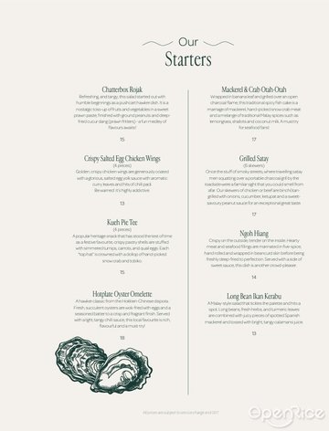 文華海南雞飯 / 龍蝦叻沙 / 牛肉河粉 / 海鮮福建麵 / 福建式肉骨茶 / 招牌椰子冰淇淋