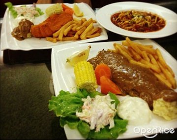 Breaded cream dory fish(top left) - $14.90Portion wise, alright, the fish fillet was quite a big piece and quite thick. It was deep fried to crunchy on the outside and tender on the inside. The fish meat itself tasted quite fresh and sweet.Bolognese(top right) - $14.90The sauce was quite rich and flavourful and contained quite a lot of minced beef.Grilled fish dory(bottom) - $14.90The grilled fish fillet was quite a big piece and quite thick too. It was well marinated and tasted soft and tender and quite juicy too.…查看更多