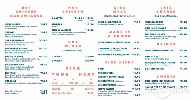 Chix Hot Chicken (新加坡) 網址: https://s.openrice.com/eKbSB01o2u200 地址: 1 Jalan Pisang, #01-01, Arab Street, Singapore 電話: +65 8893 7031