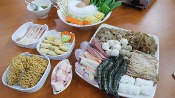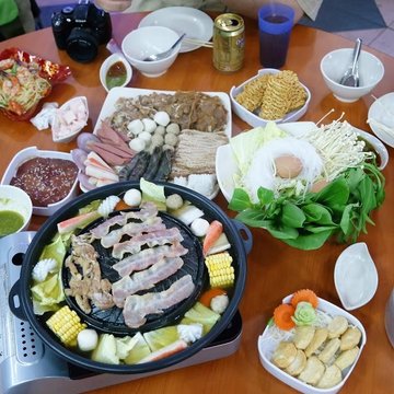 Review on http://herpenandfork.blogspot.sg/2016/04/chokchai-mookata-review-thai-mookata-in.html Unlike the many Thai Mookata eateries that have sprung up as standalone eateries in the recent years, Chokchai Mookata has chosen its location within a heartland coffeeshop. Thai Mookata is traditional Thai Steamboat BBQ. Opened by local owner Len and his friend, the stall is located within a coffeeshop that is a 10-15 minutes walk from Ang Mo Kio train station. The distinctive point of the mookata here lies in their homemade clear soup base made from radish. It has a light sweetness and is good on its own, yet also makes a good canvas for the seafood/meat to enrich.Chokchai offers sets of $28++ (2-3 pax)/$45 (for 5-6 pax). Each set comes with an assortment of meat such as black pepper chicken and soy garlic lean meat, scallop, prawns and vegetables. We had the set for 6, but still found that we had some leftover meat left. If you like, you can add on additional preferred ingredients too.They make their own seafood sauce and chili dips. Try both, and decide which one you like better. My preferred was the seafood (green) one. Warning: the chili packs a punch, but it is worth the heat (with the squid especially).Apart from the Mookata, they also have Som Tam (Thai green papaya salad). For the uninitiated, this is among Thailand's national dishes.The salad is made by Thai hands - one of the staff here. It packs fieriness, so be warned those who can't take spiciness. Yet, it is refreshingly appetising (if you can get past the heat). For those doing mookata for the first time like I was, you start off your mookata by heating up the iron dome. Then take the chunks of lard (ooo) and grease it before laying your meat on it.Afterwards, it is pretty much whatever floats your boat in the cooking. Don't neglect the side soup 'river' too. Apart from having it the usual steamboat-ish style, try putting the maggi noodles to cook inside and then have it dry-style by tossing your noodles in the green seafood sauce dip. For the meat, I preferred the black pepper chicken to the other soy garlic lean meat which was sweeter. This may not be the most 'authentic' experience of Mookata, if you insist upon charcoal for your experience. There's also the non air-conditioned setting that may be harder to bear with, though we did not have much problems with that as the fans within did a pretty good job. Otherwise, Chokchai is a very affordable option to consider for a Mookata experience ($8-$10 per pax really?) and the quality. …查看更多