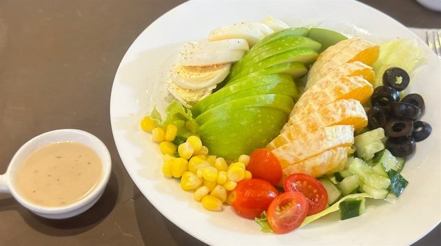 用餐日期:2024/05/14用餐時段:午餐用餐費用(每人):$15.9餐廳環境:環境整潔乾淨 室內不少座位 檯與檯之間闊落 坐得舒服 服務:服務員服務應度正常 味道:點了Vegetarian/Fruit Salad 素食/水果沙律Vegetarian/Fruit Salad 素食/水果沙律:這沙律碗是上闊下窄設計 下窄沙律底是小量的生菜 生菜面上有切片的雞蛋 青蘋果 橙 番茄仔 粟米粒 青瓜粒 黑橄欖粒 配了一個芝麻醬 食材新鮮味道不錯 如沙律菜是雜錦沙律菜 有牛油果 菜份量多些 更好 推薦 總結:這家環境舒適 食物味道不錯 客人不多 坐得舒服 價錢在同類型餐廳中合理 適合想在寧靜環境下輕食的客人餐牌&餐廳資訊:…查看更多